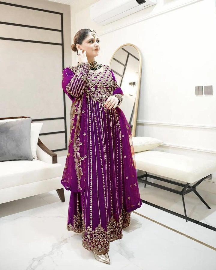 GOWN :HEAVY GEORGETTE WITH *SEQUENCE EMBROIDERY WORK