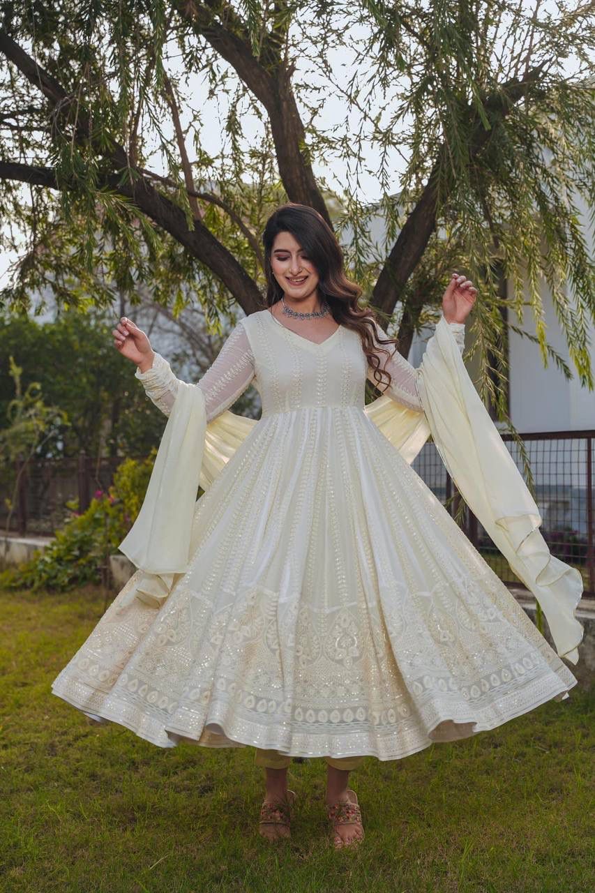 GOWN FABRIC : GEORGETTE WITH EMBROIDERY WORK WITH FULL SLEEVES