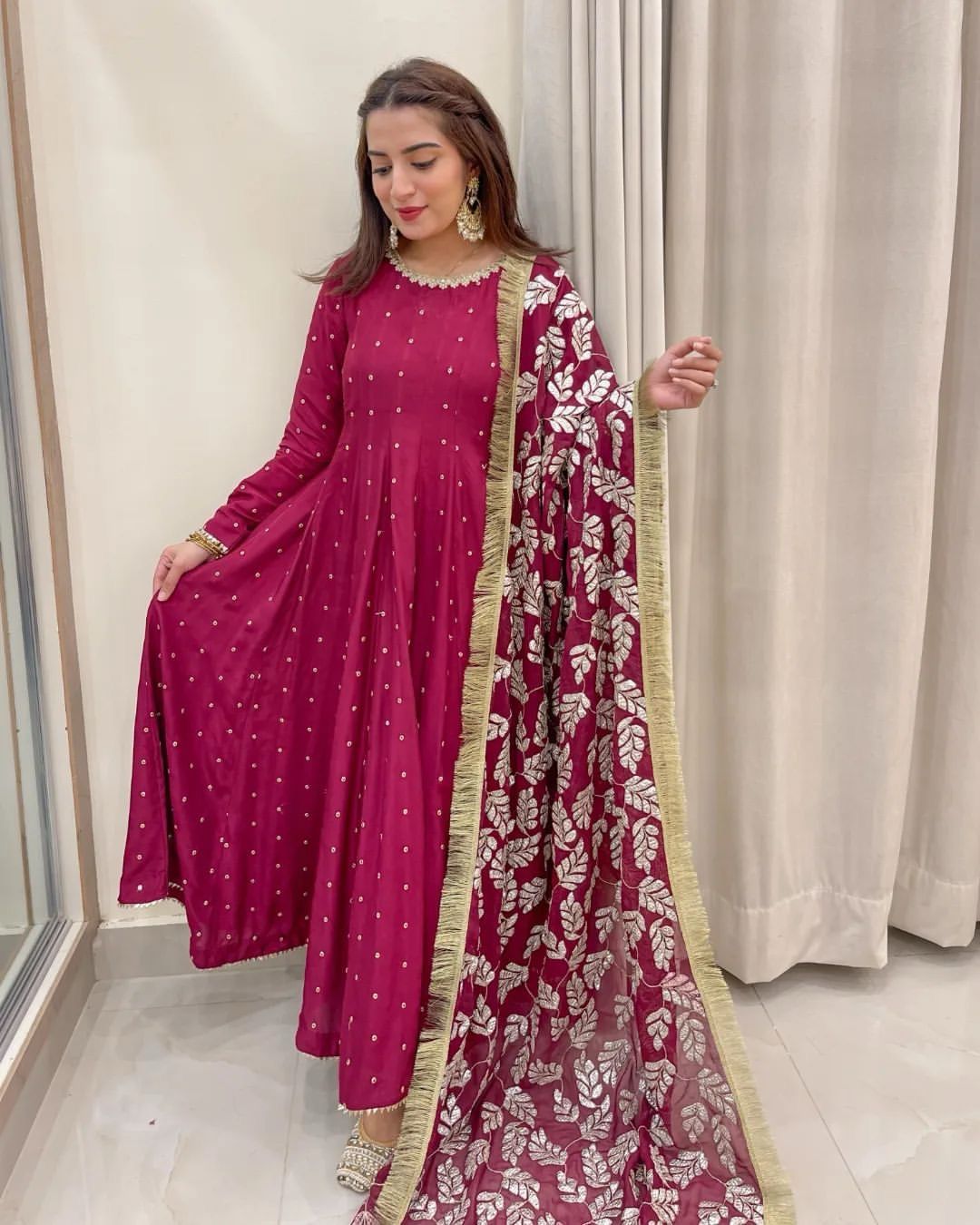 GOWN :HEAVY GEORGETTE WITH EMBROIDERY WORK