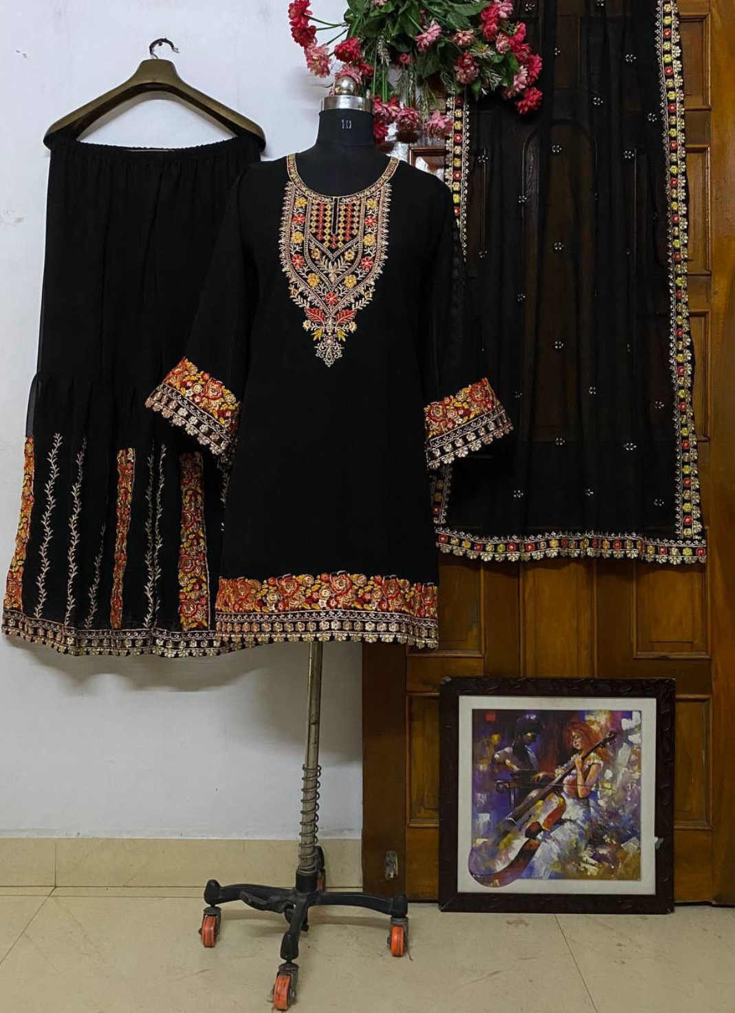 GOOD QUALITY HEAVY GEORGETTE TOP WITH BEAUTIFUL EMBROIDERED & HEAVY GEORGETTE PLAZZO