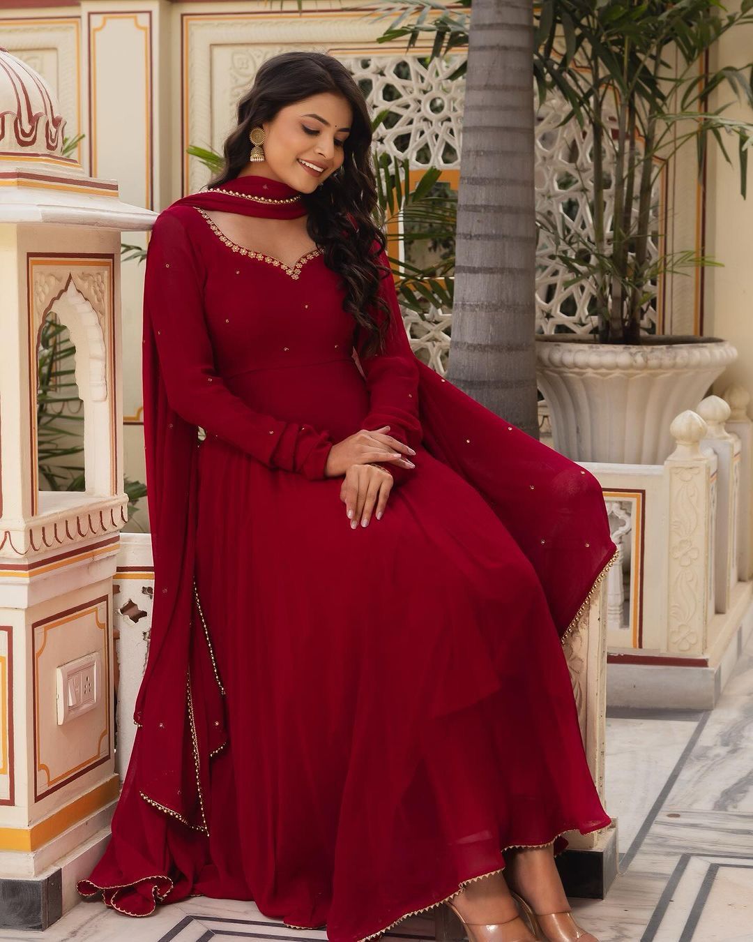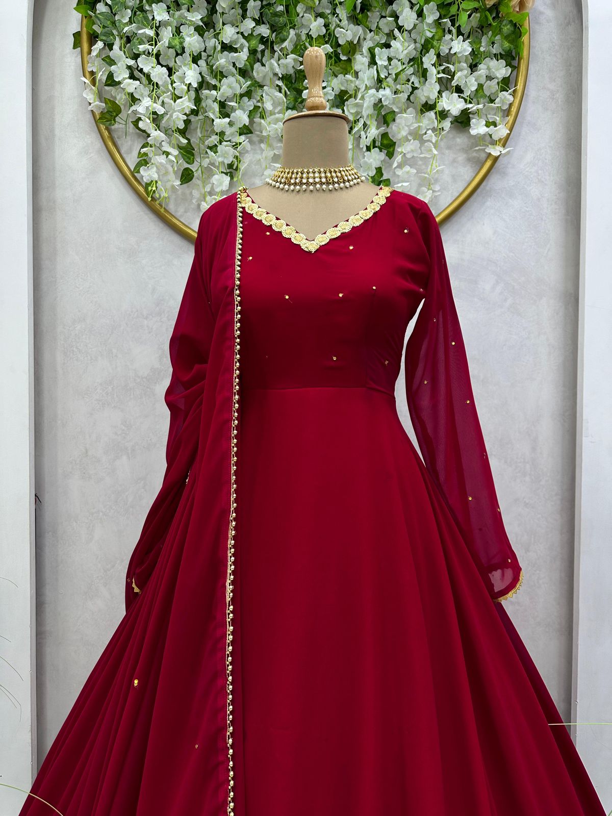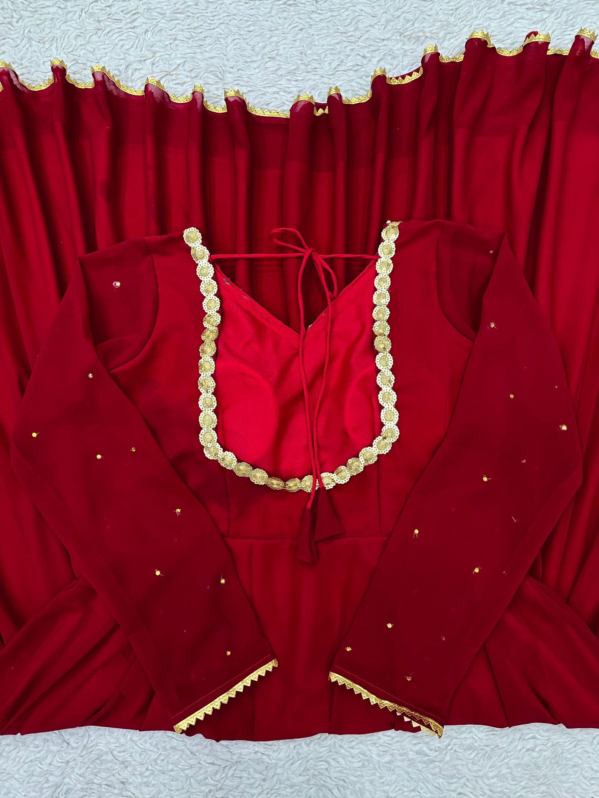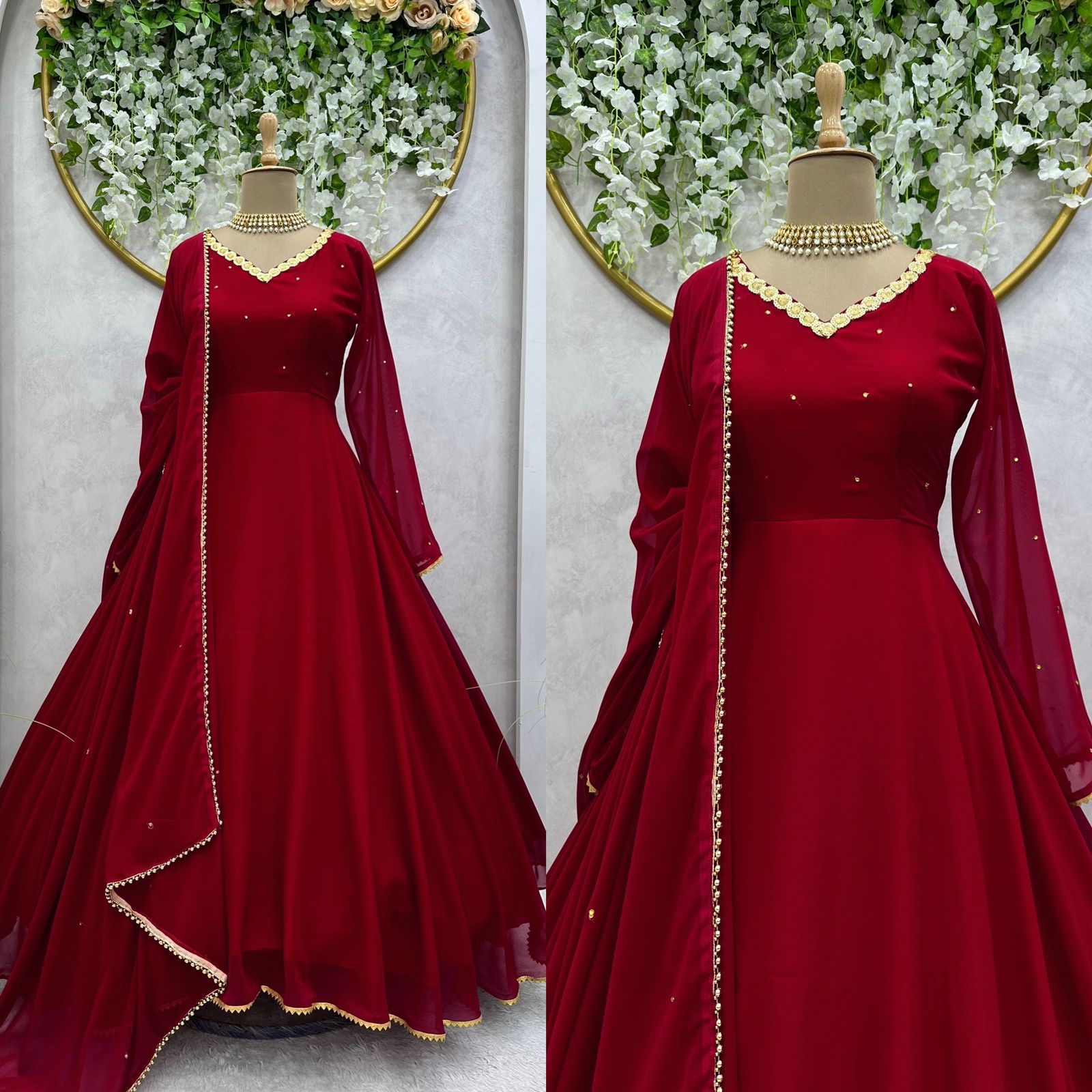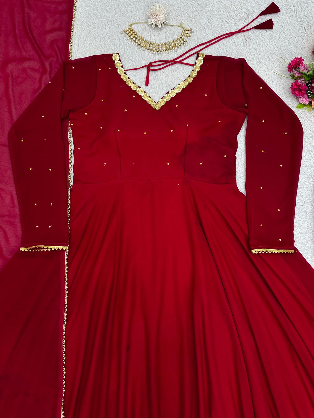 Looking for this same colour beautiful Designer Suit on Georgette fabric with Inner and Sequnce With Ston work and Pent on also Crep Febric and Dupatta on also Faux Georgette Frbeic With Moti Lace work with Stone work.