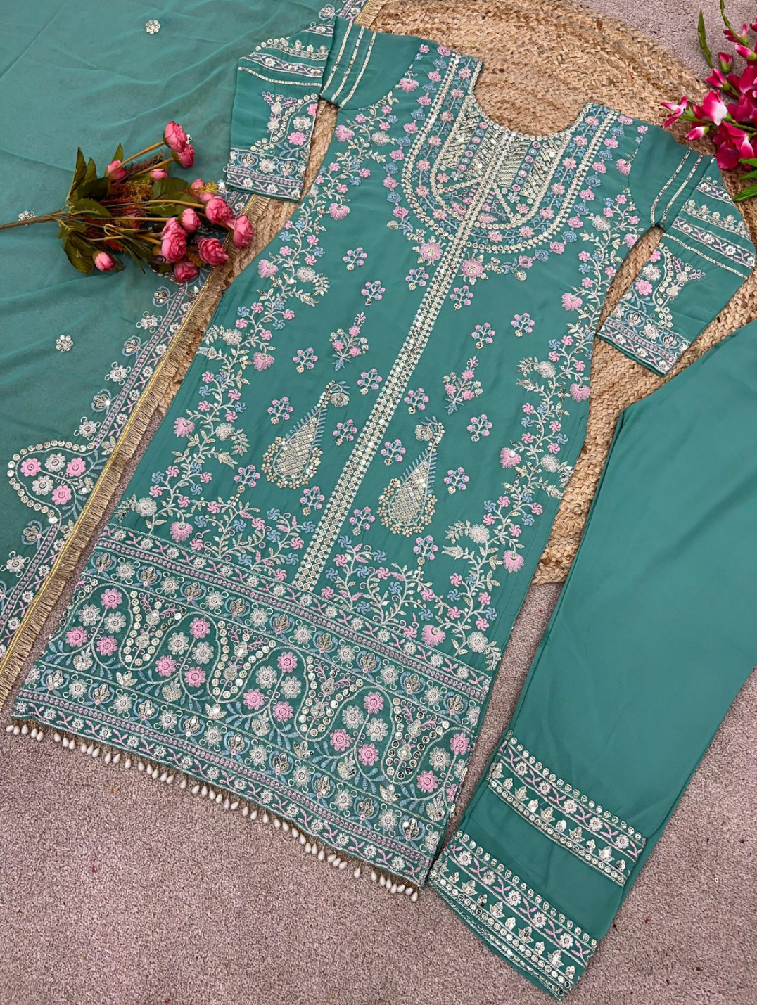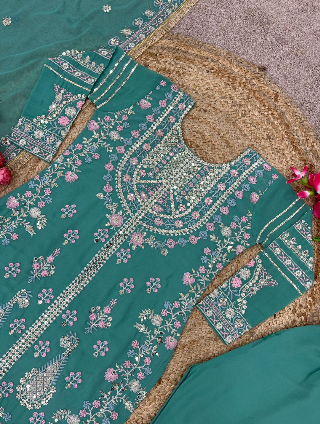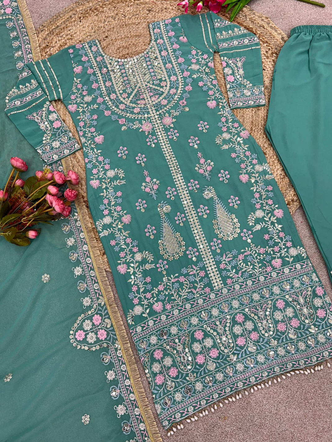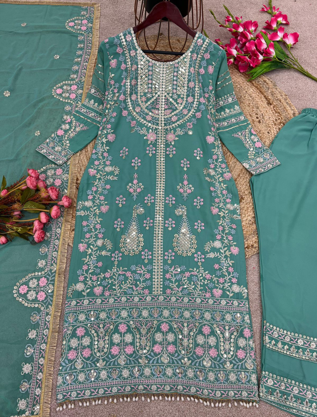 Bottom Fabrics :Heavy Georgette With Embroidery Sequence Work