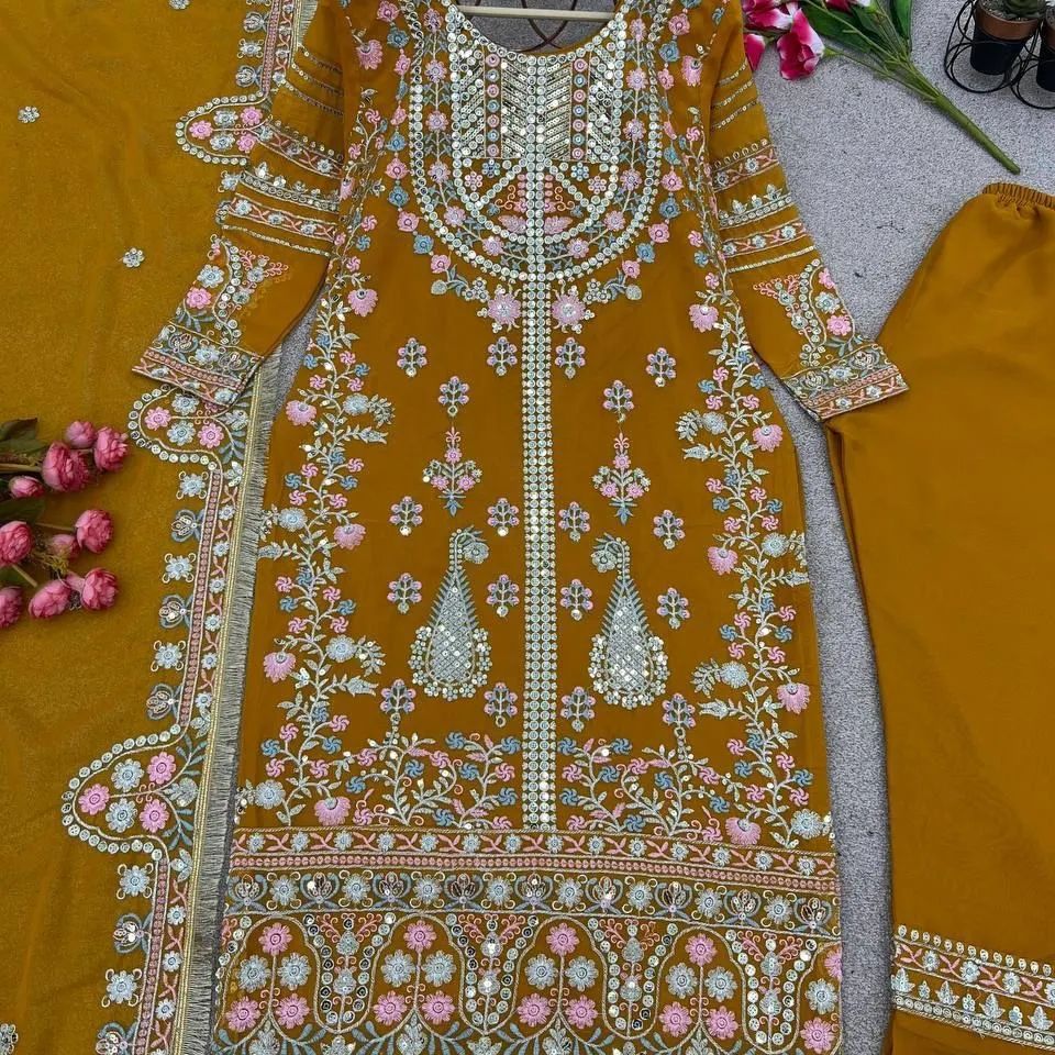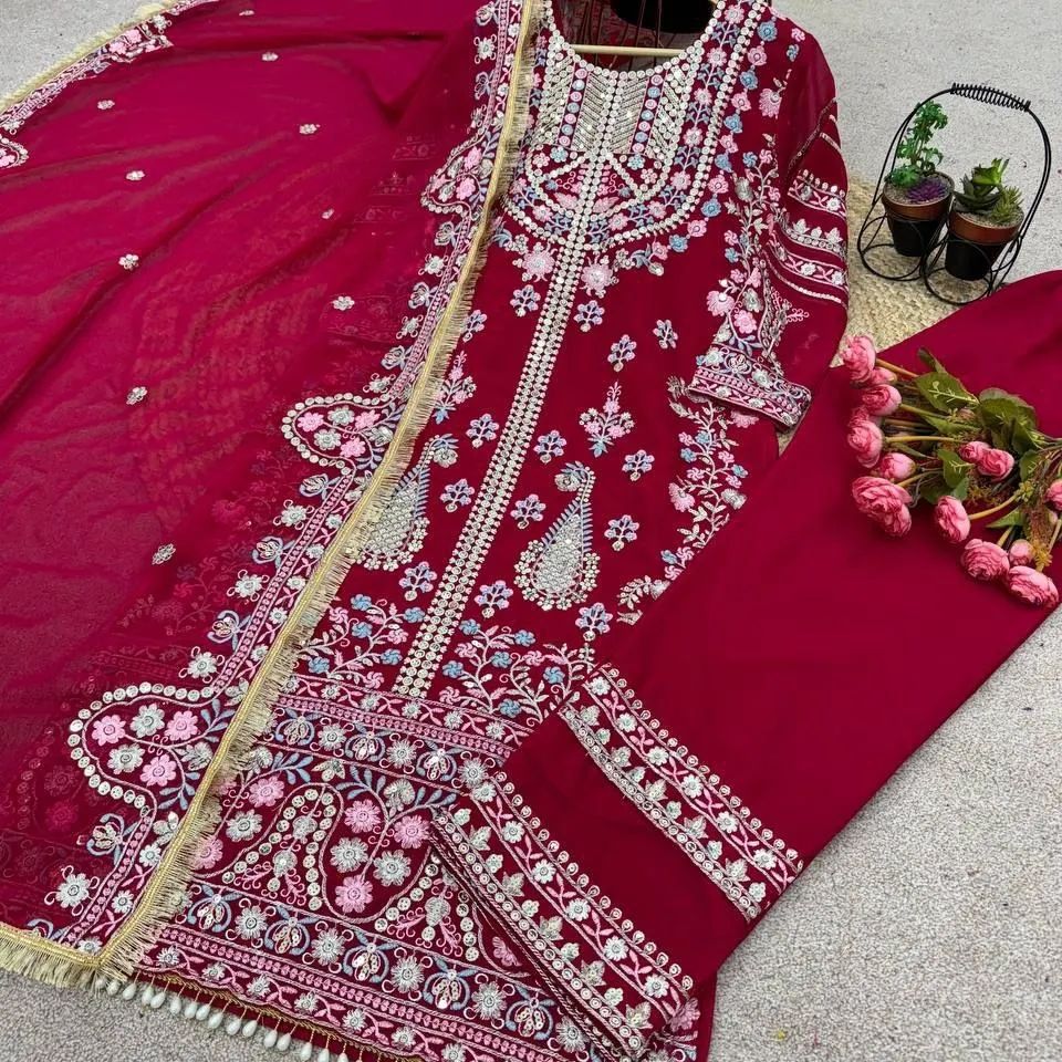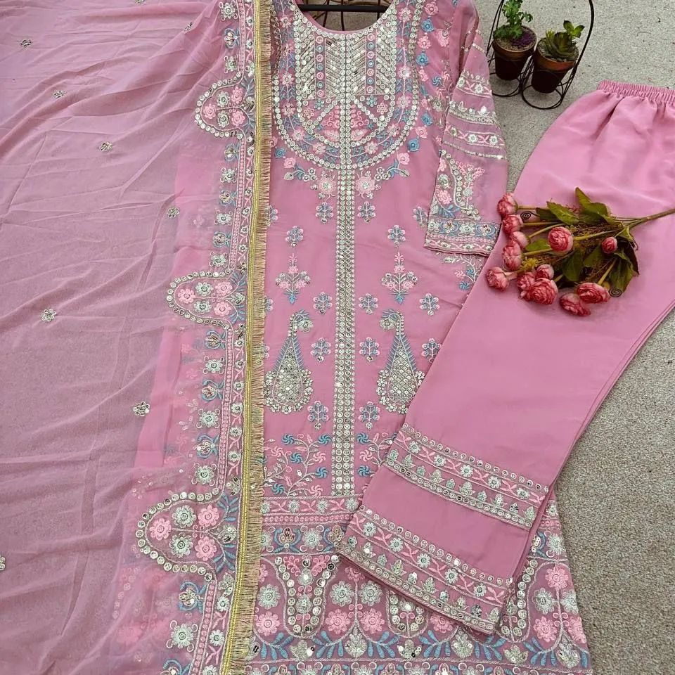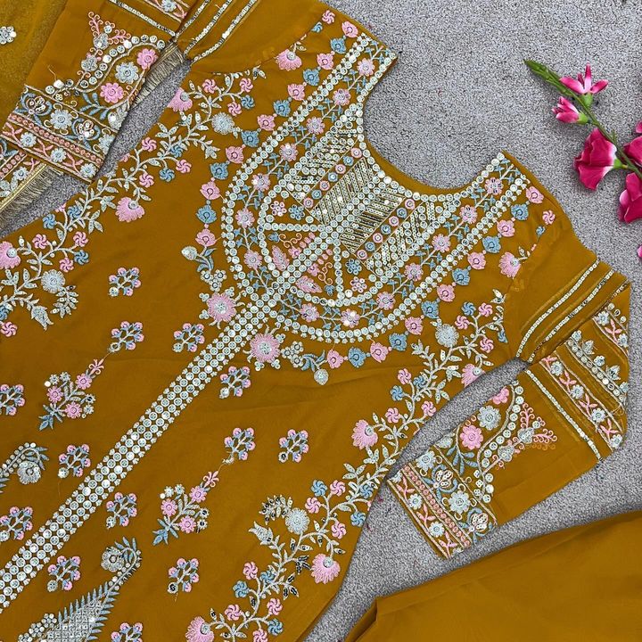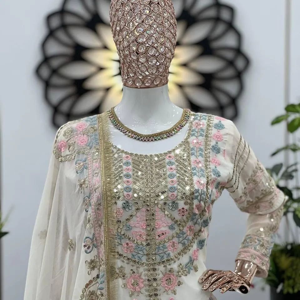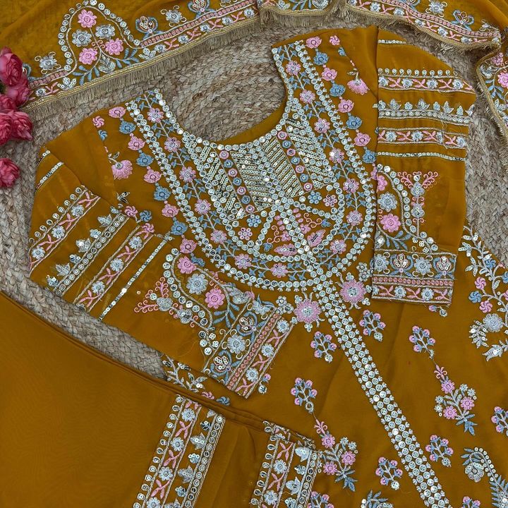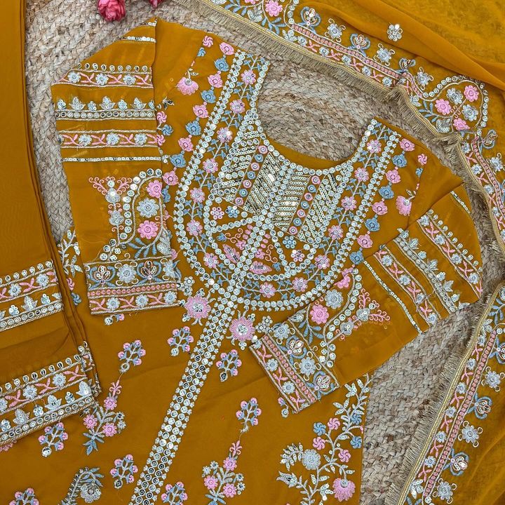 Presenting New Festival Collection With Georgette And Heavy Embroidery Sequence Work Top-Bottom And Dupatta Set Fully Stitched Ready To Wear