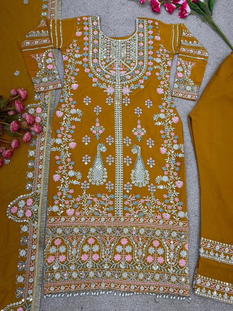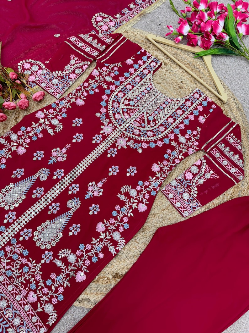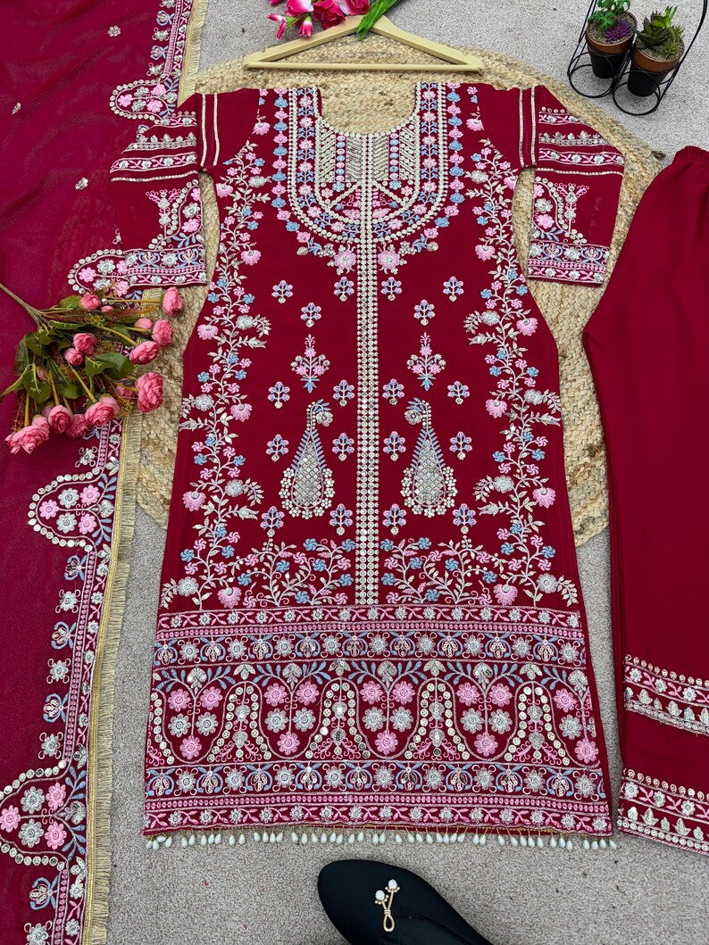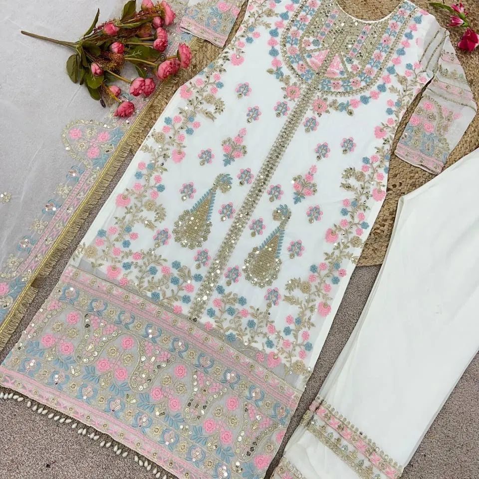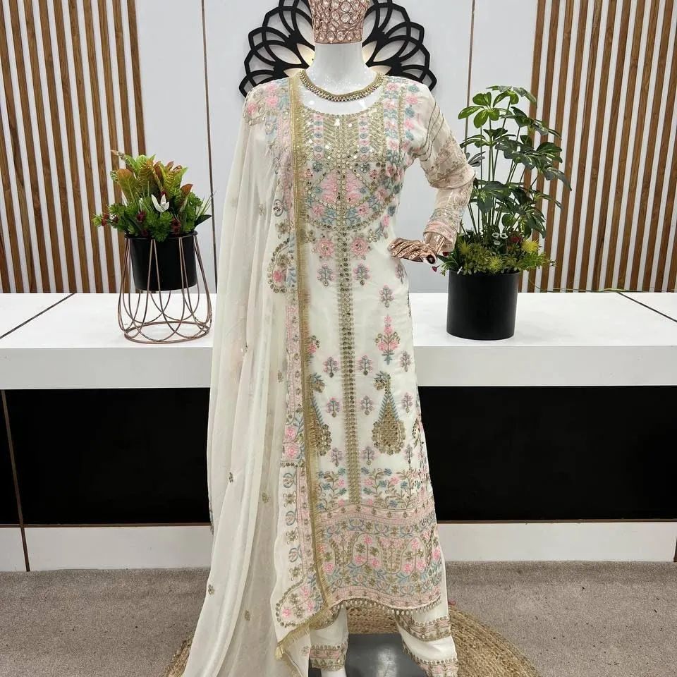 Presenting New Festival Collection With Georgette And Heavy Embroidery Sequence Work Top-Bottom And Dupatta Set Fully Stitched Ready To Wear