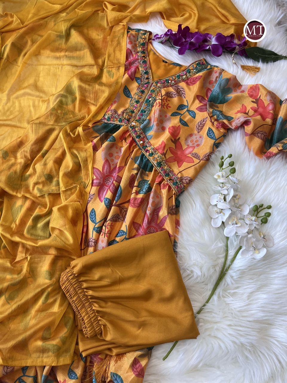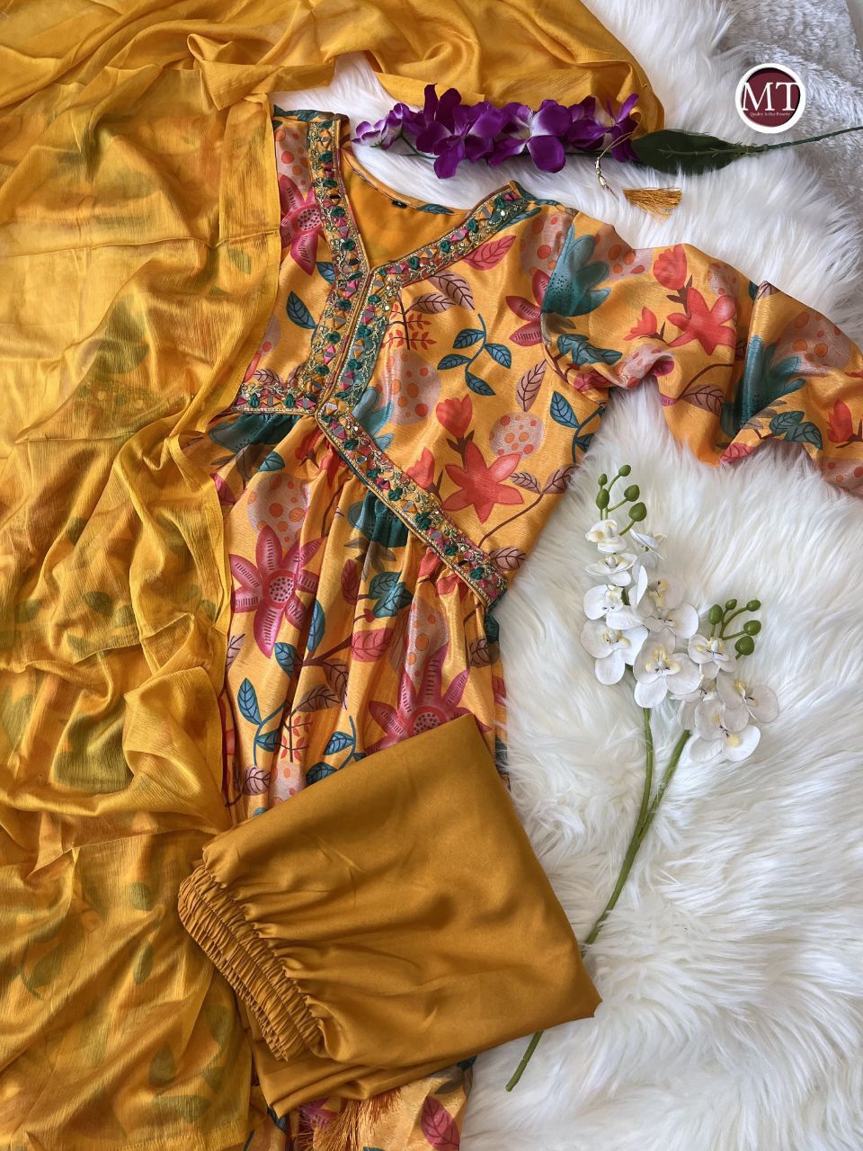 LAUNCHING GLAMOUROUS YELLOW ALIYA CUT WHICH IS BEAUTIFULLY DECORATED WITH INTRICATE HANDWORK, STONEWORK DORIWORK AND MIRROR WORK. IT IS PAIRED WITH PANT AND DUPATTA