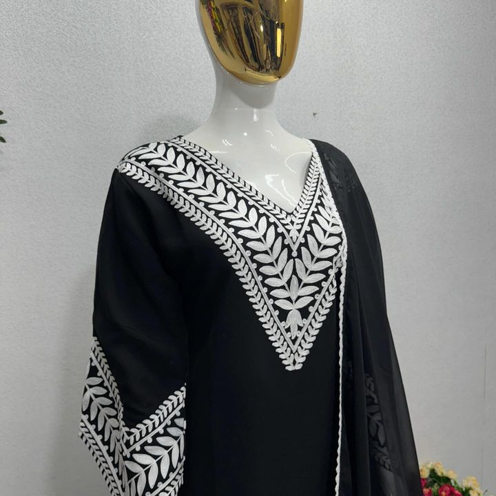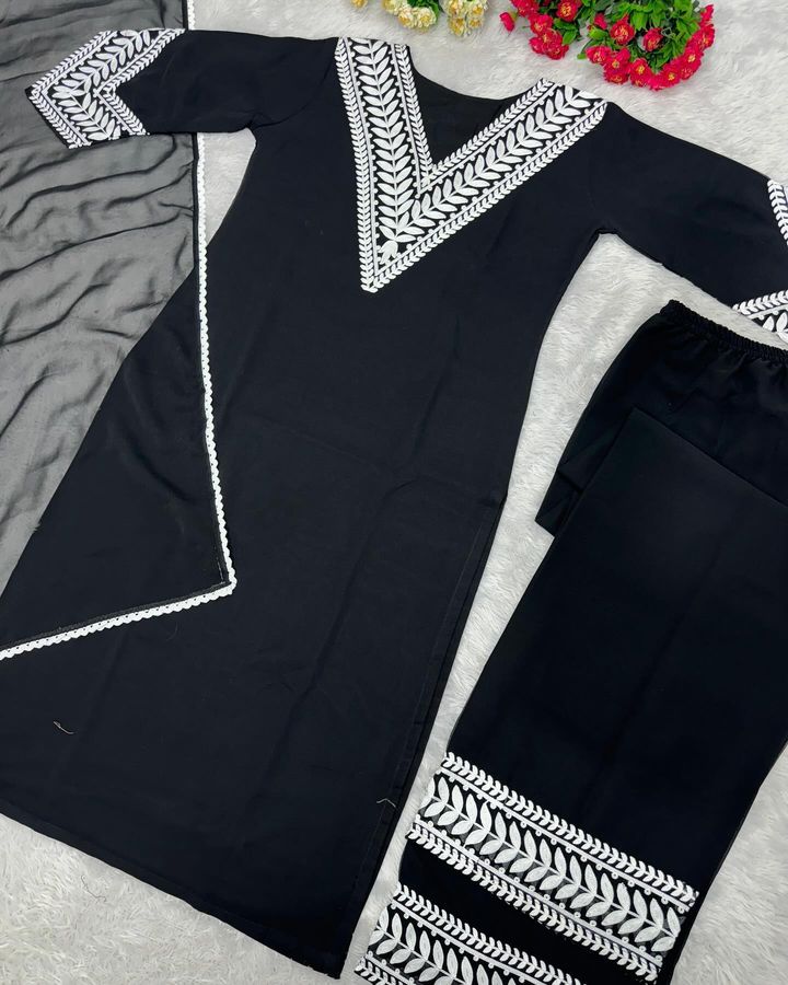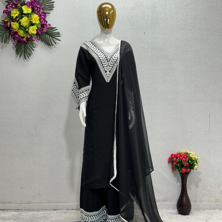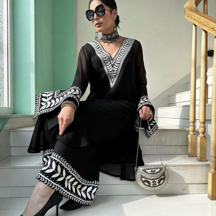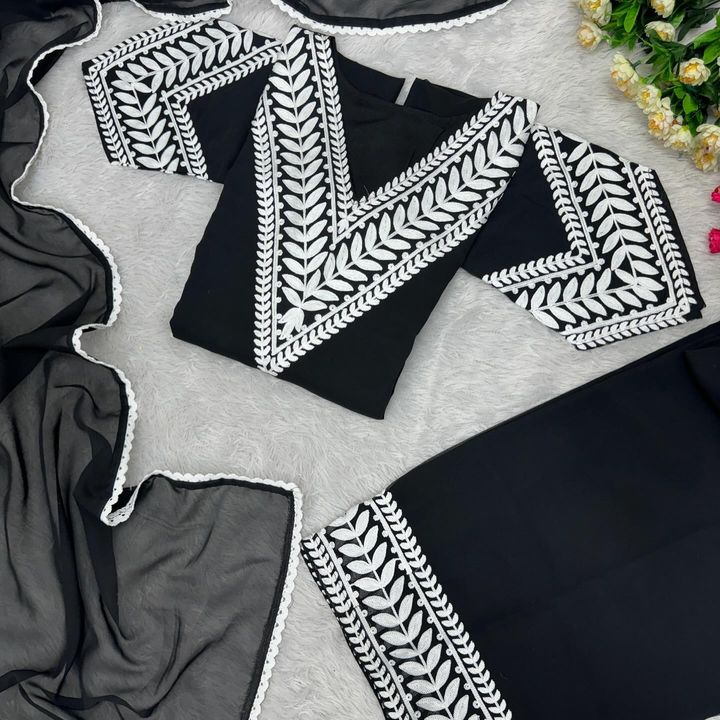 DESIGNER PARTY WEAR TOP WITH FANCY CHINE STITCHED WORK PLAZZO