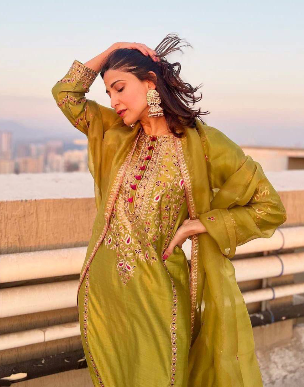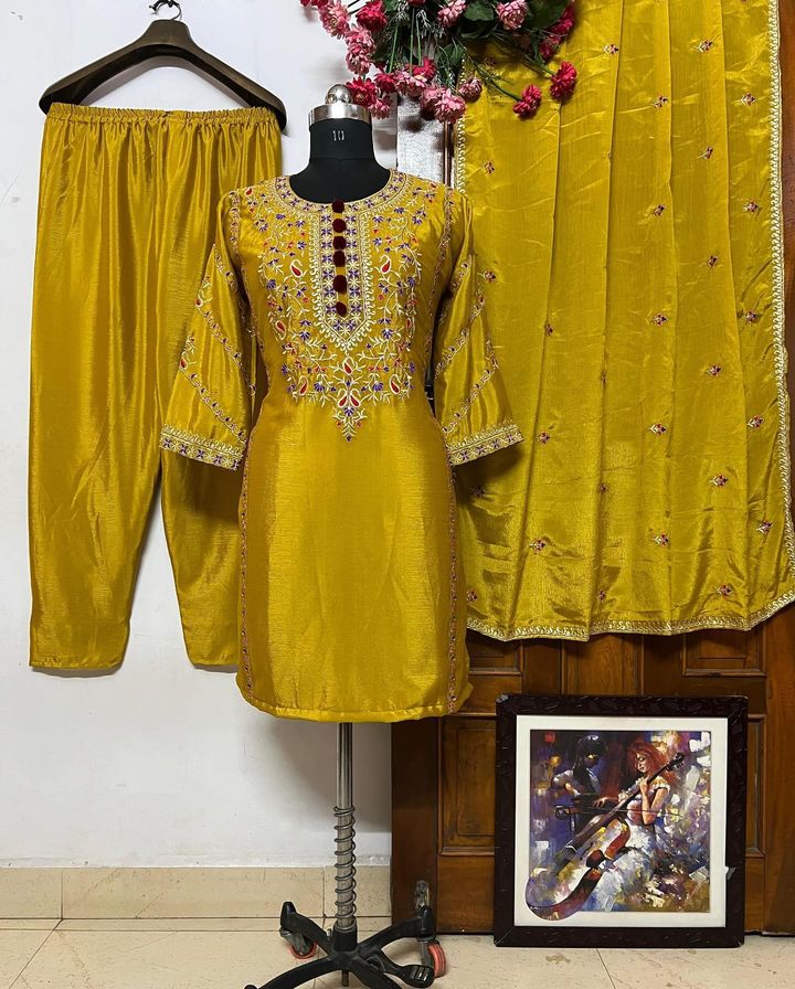 GOOD QUALITY CHINNON SILK TOP WITH BEAUTIFUL FULLY EMBROIDERED CHINNON SILK PLAZZO