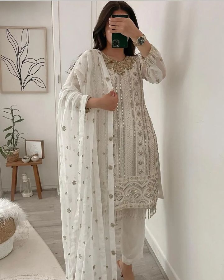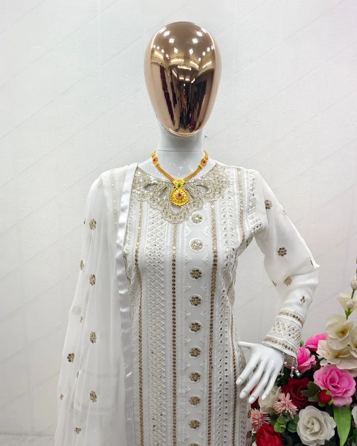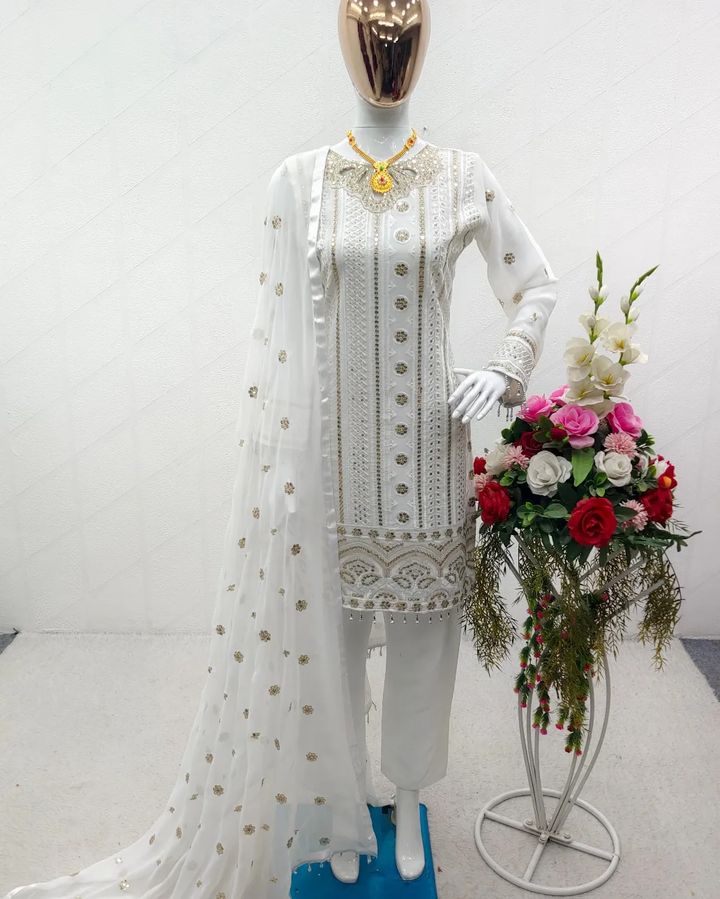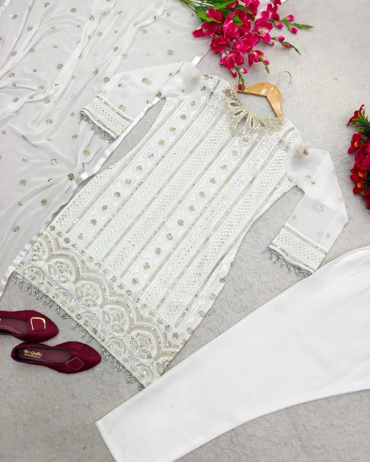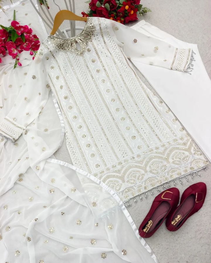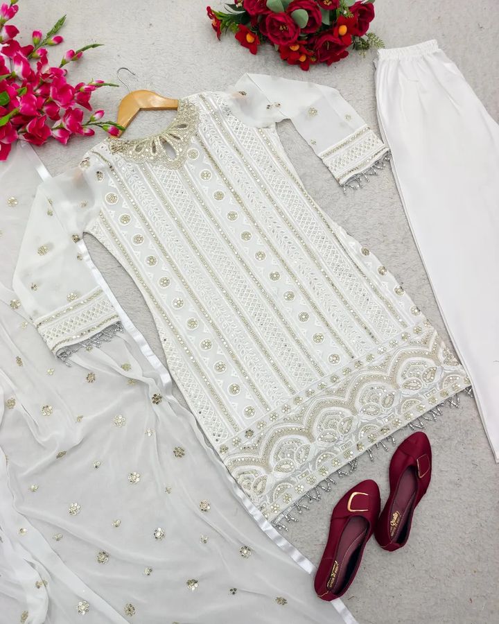 Dupatta Fabric : Heavy Georgette With 5mm Sequence Embroidery Work With Fency Moti Less Work With Full-Stitch (2.15-2.20mtr)