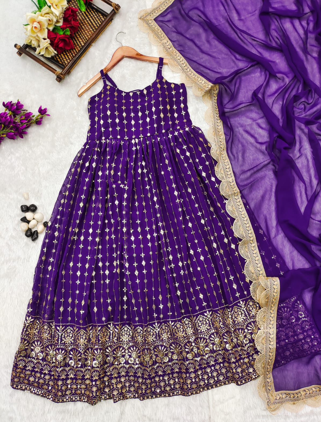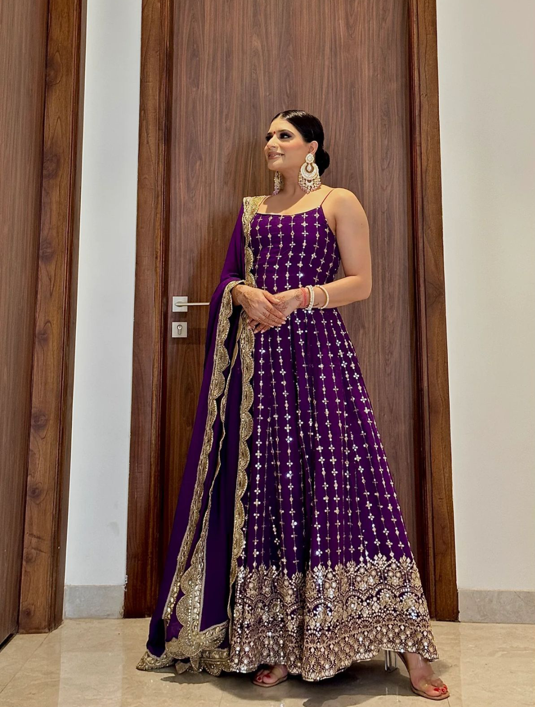Embroidery Beautiful Thread Sequence Work All Over The Gown And Dupatta