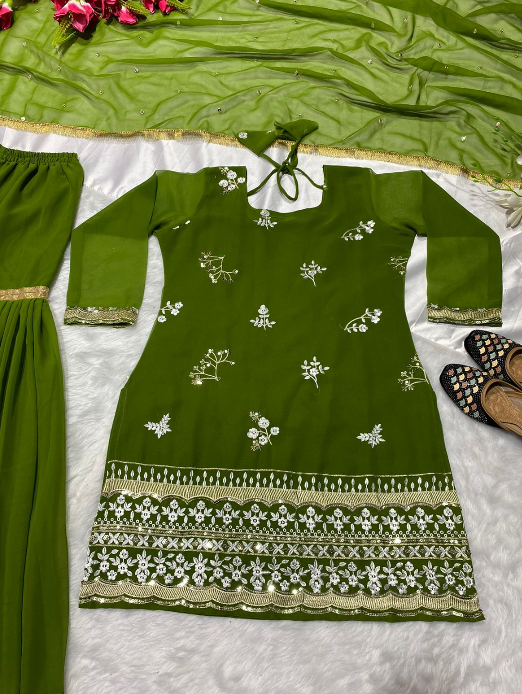 Top Fabric : Heavy Georgette With Heavy 5mm Embroidery Sequence Work With Full Sleeve With Latkan Dori