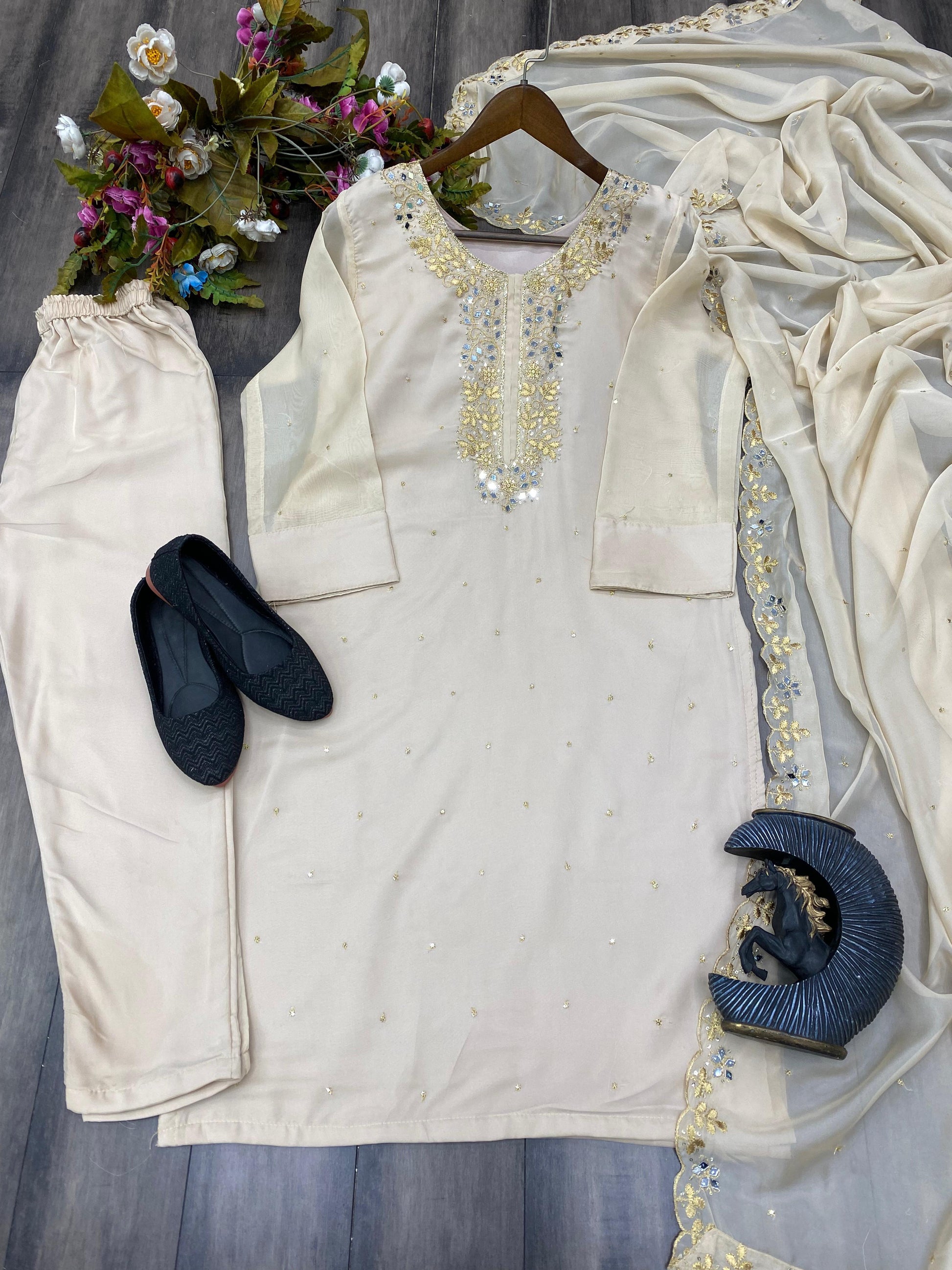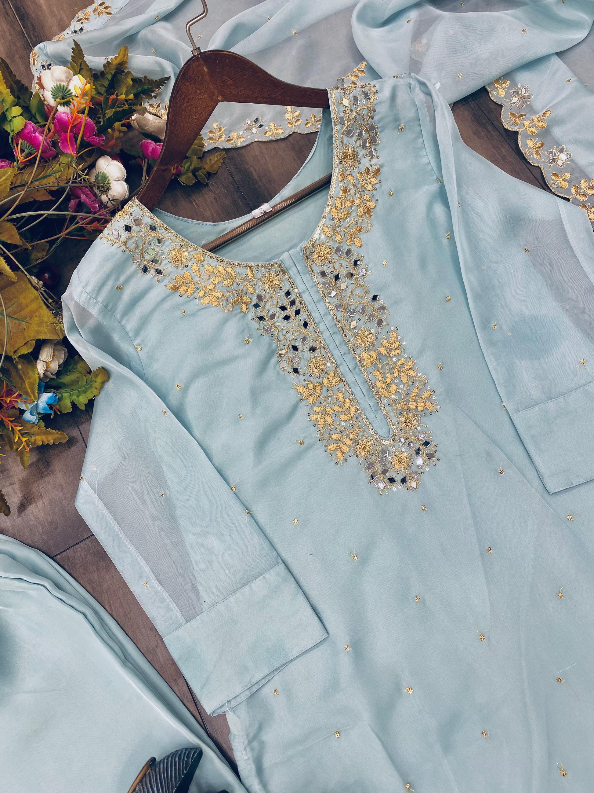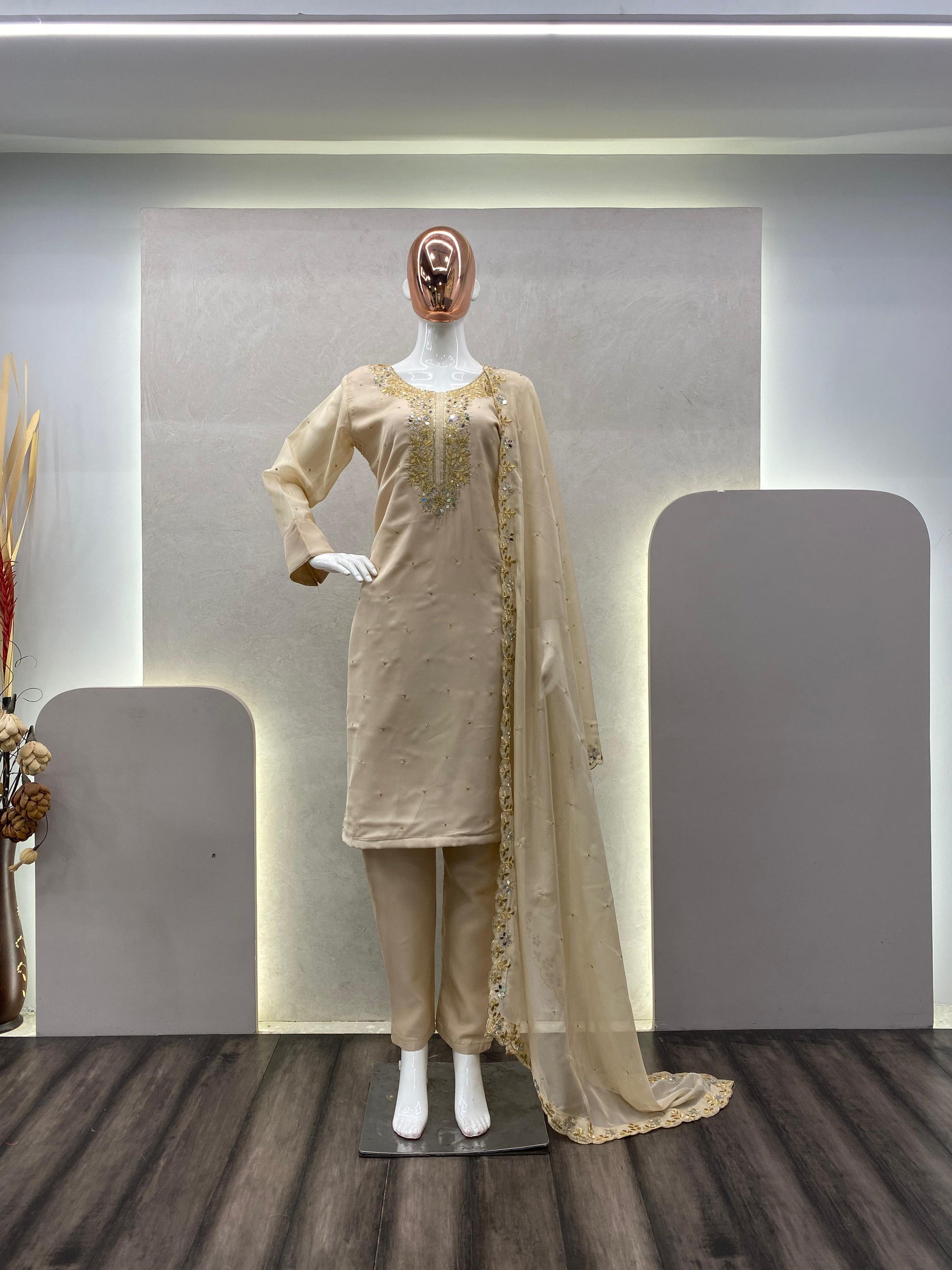 DESIGNER TRENDING SEQUENCE EMBROIDERY WORK SUIT PENT AND DUPATTA