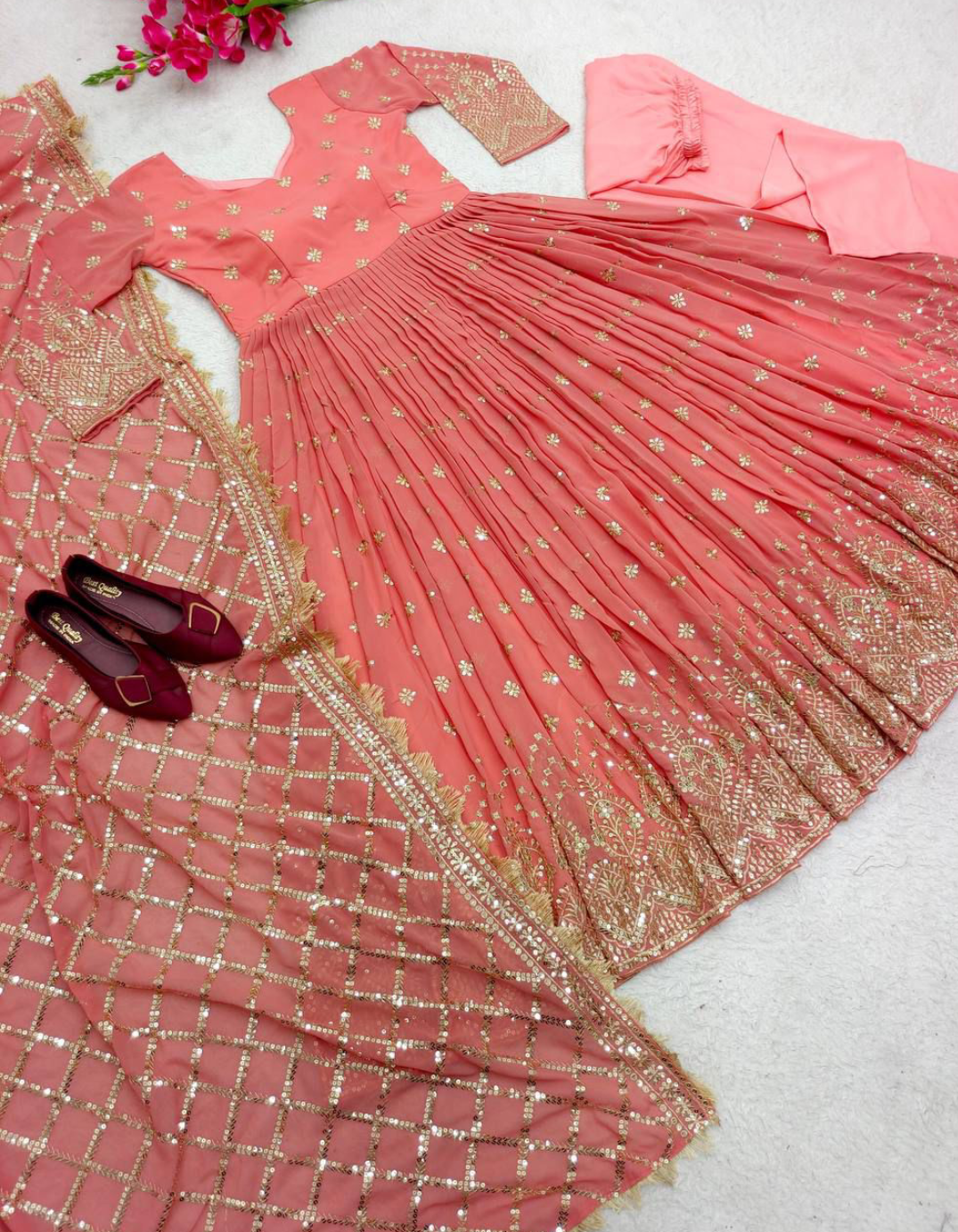 Gown Fabric : Heavy Georgette With Hevvy 5mm Sequence Embroidery Work With Sleeve With (Attached Pad)