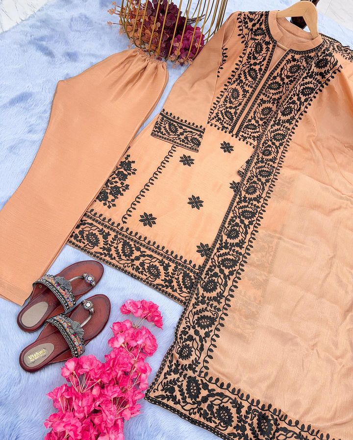 Launching New Designer Party Wear Look Chinon Silk Top Bottom & Dupatta Set