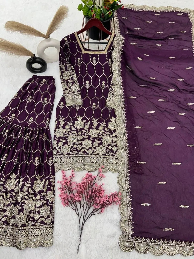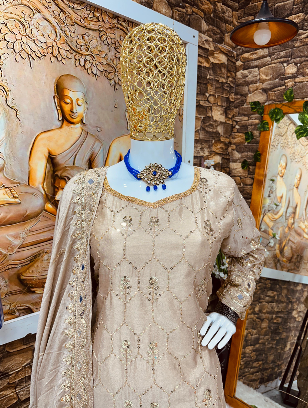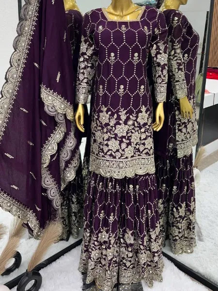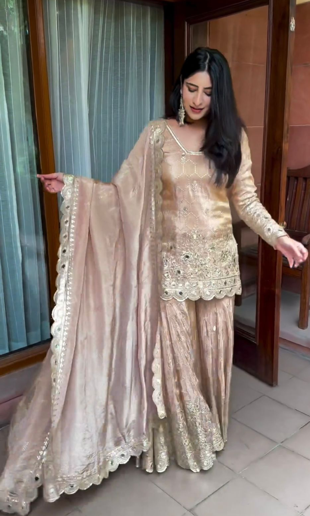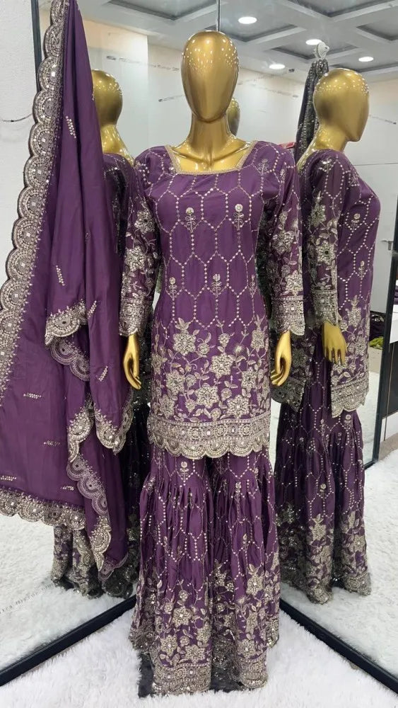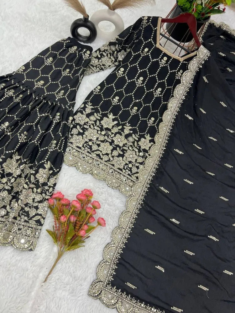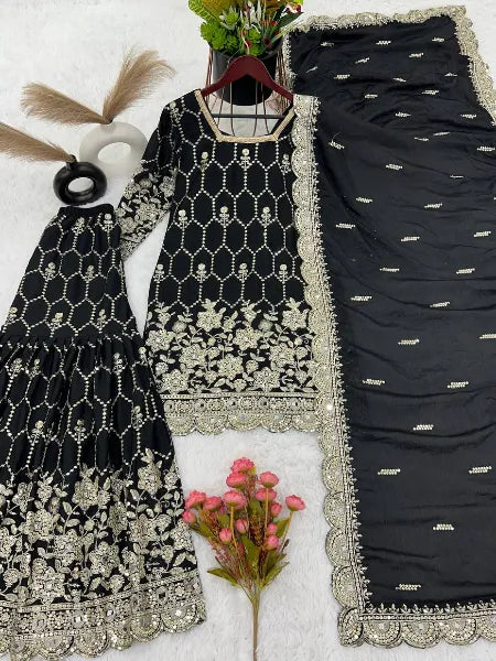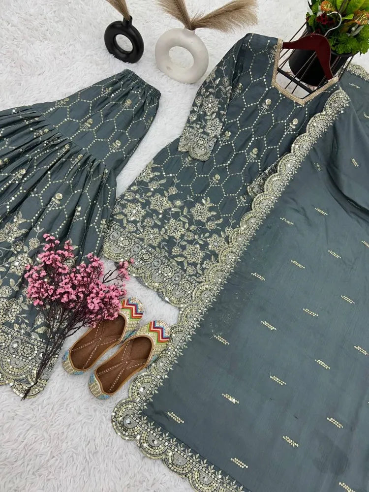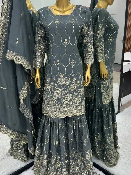 NEW DESIGNER PARTY WEAR TOP AND PLAZZO. WITH FANCY DUPPATA AND EMBROIDERY WORK