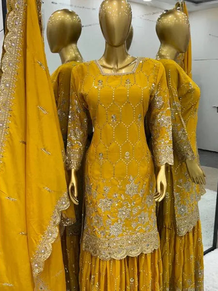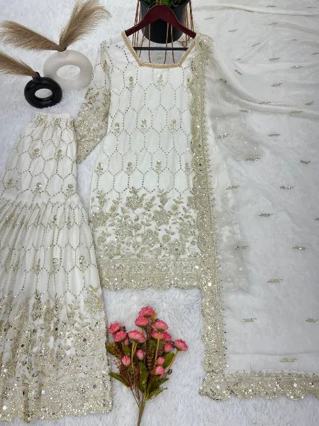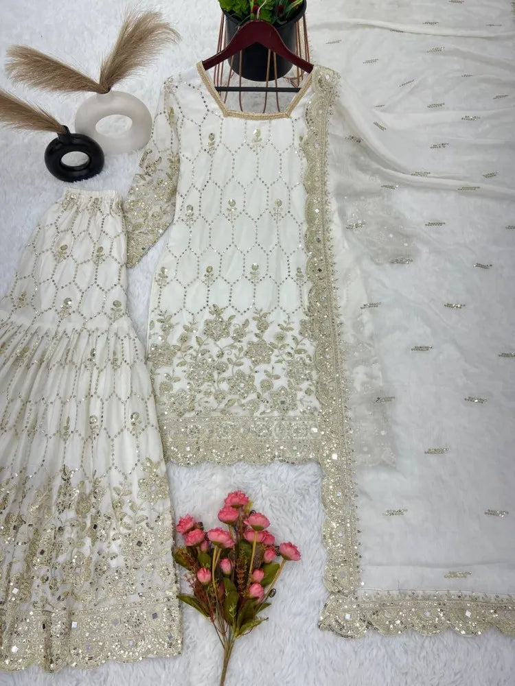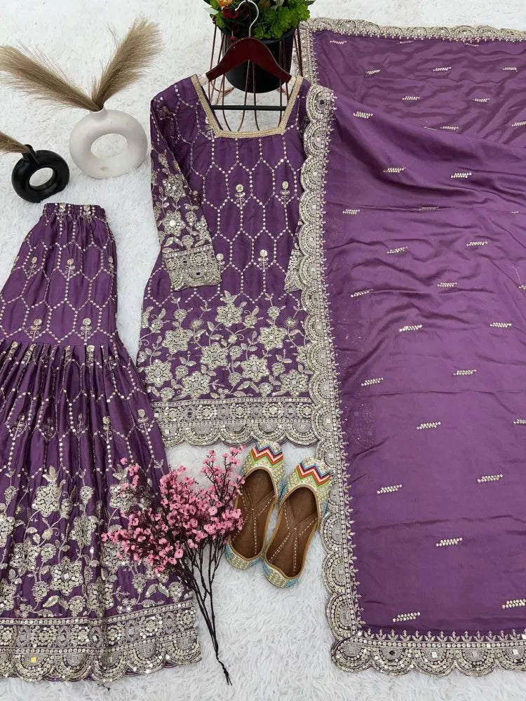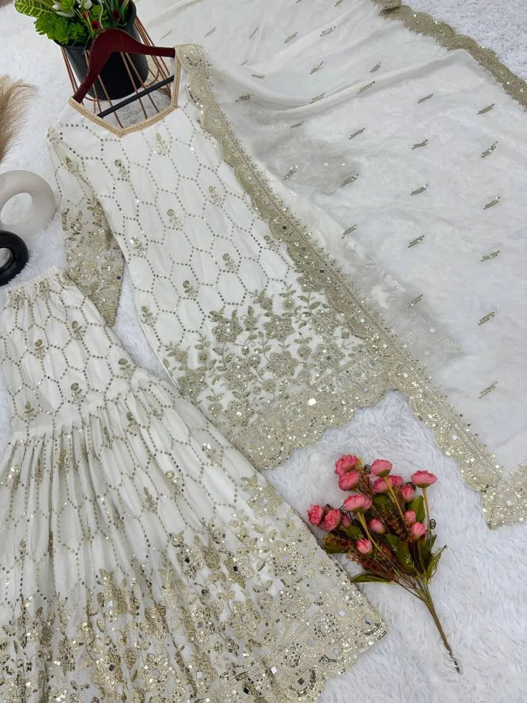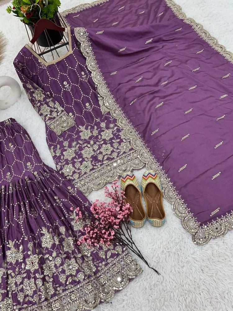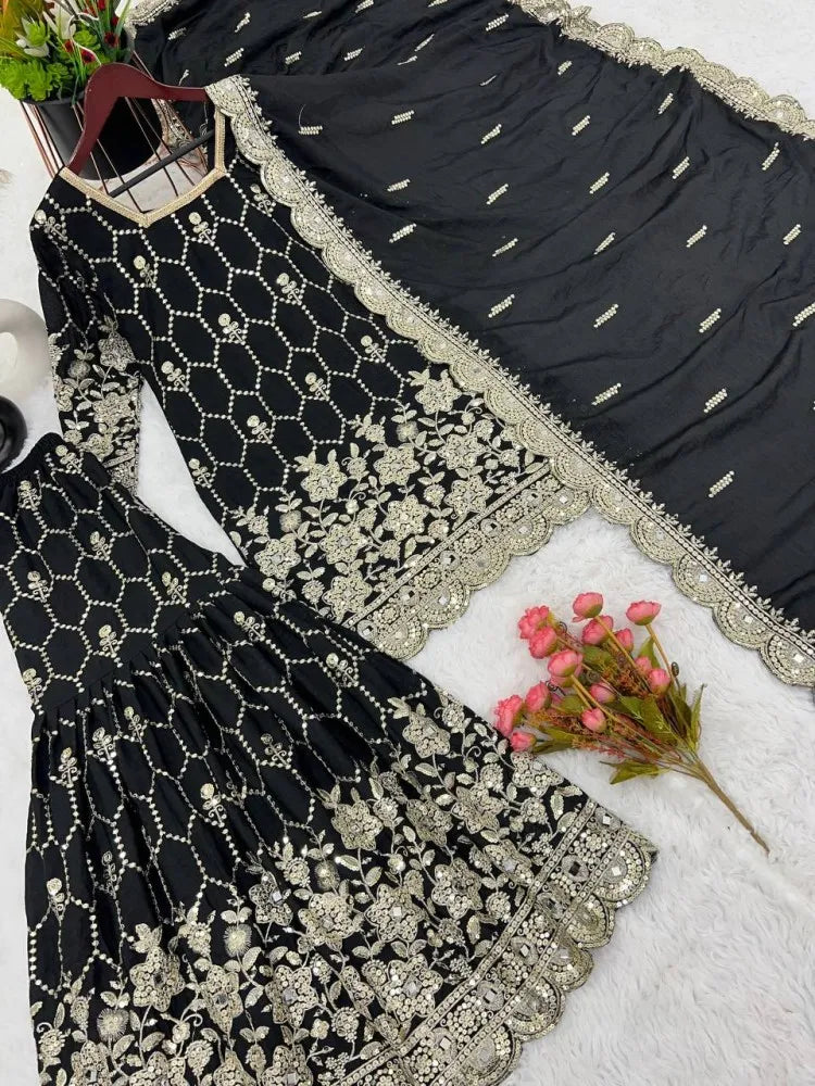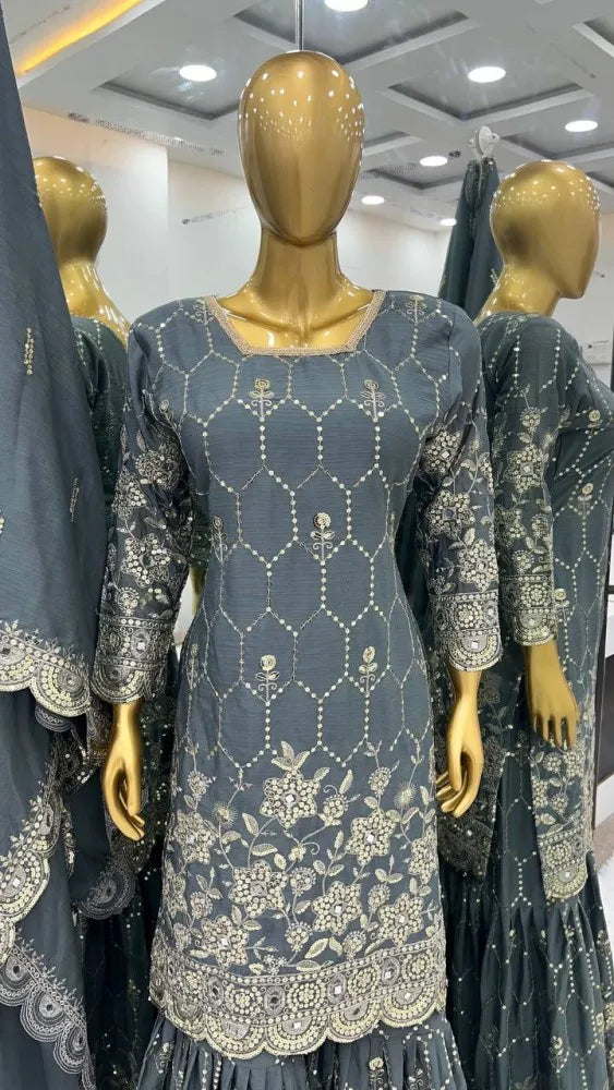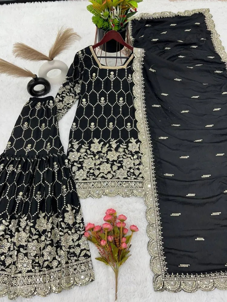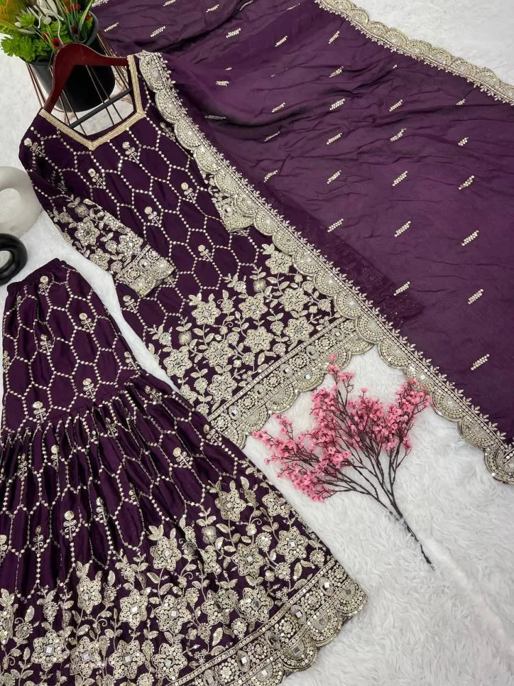 NEW DESIGNER PARTY WEAR TOP AND PLAZZO. WITH FANCY DUPPATA AND EMBROIDERY WORK