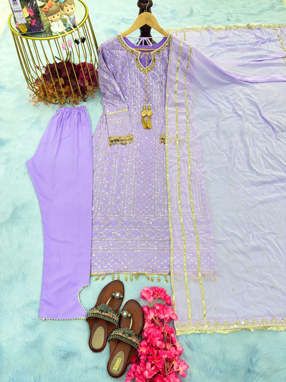 Launching New Designer Party Wear Look Heavy Georgette Top Bottom & Dupatta Set