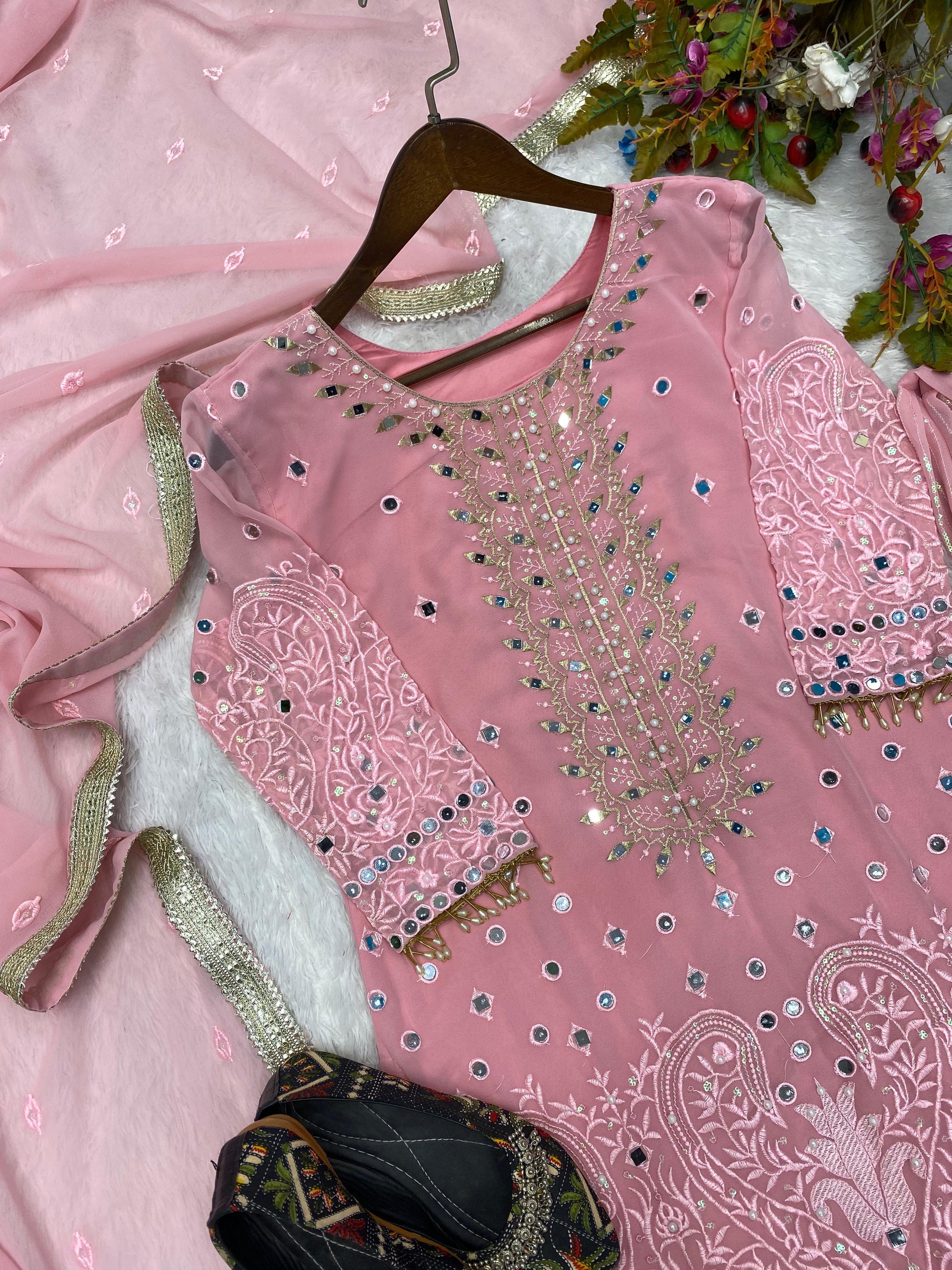 GHARARA : GEORGETTE WITH SEQUANCE EMBROIDERY WORK