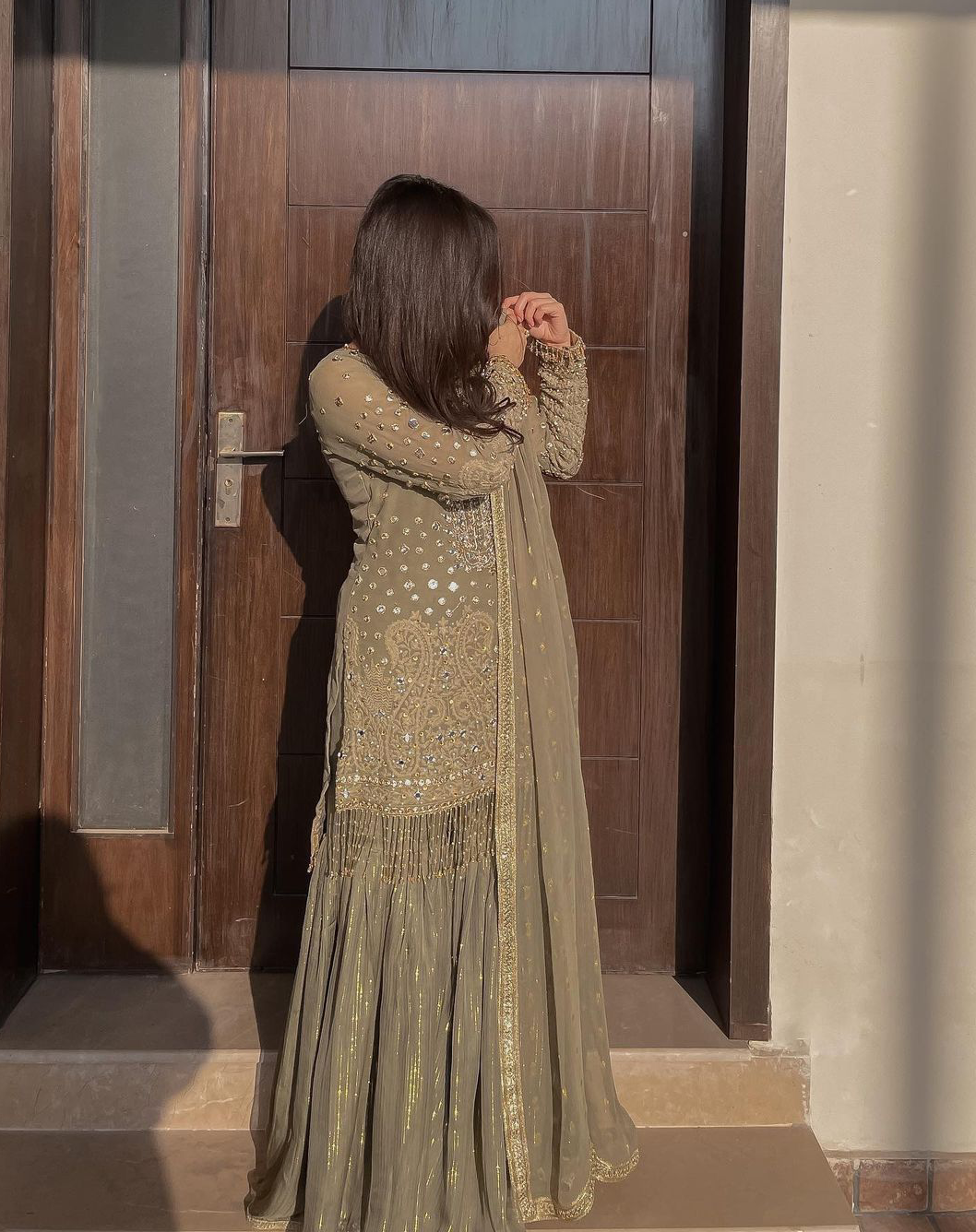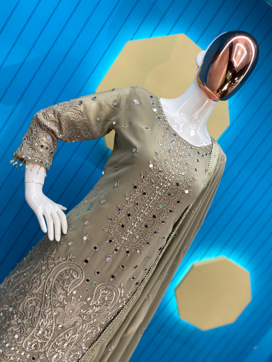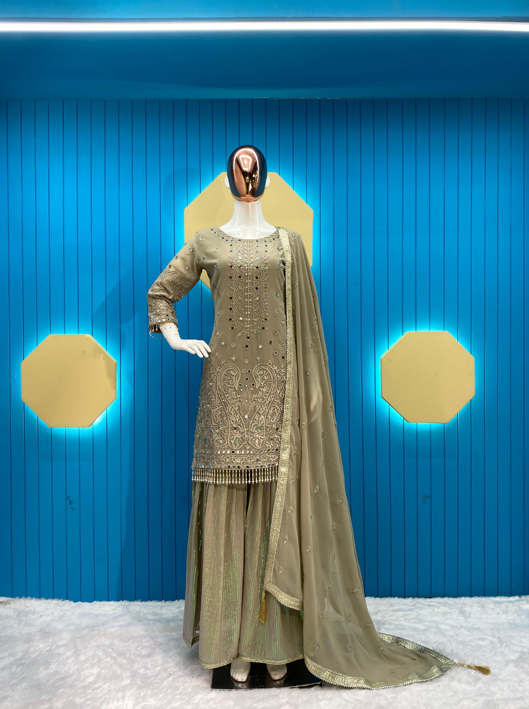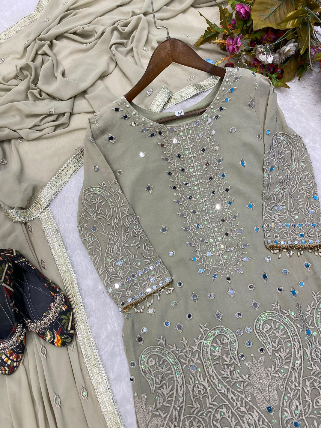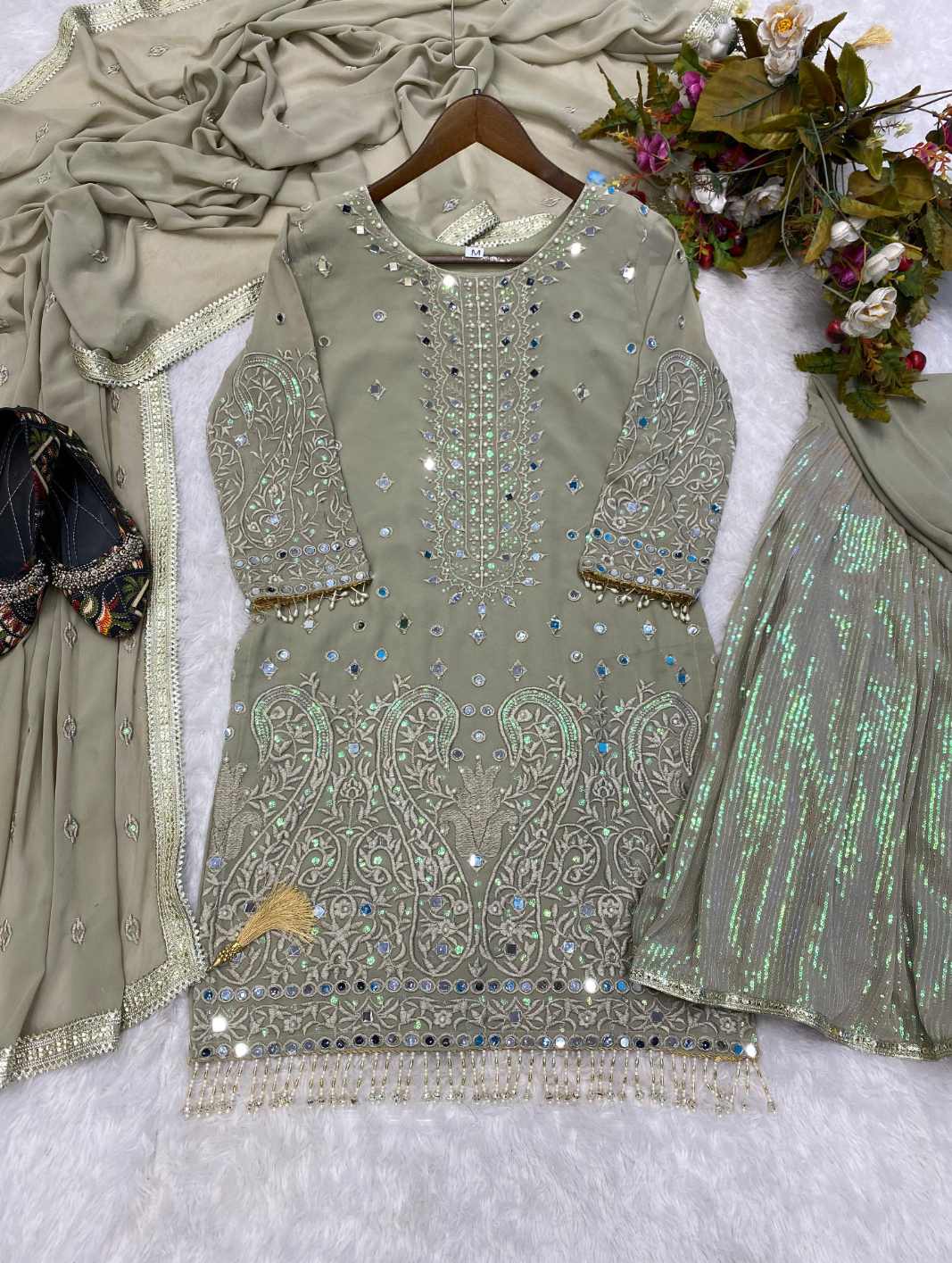 EXCLUSIVE DESIGNER HEAVY GEORGETTE SEQUENCE WORK SUIT WITH FULL FLAIR WORK GHARARA