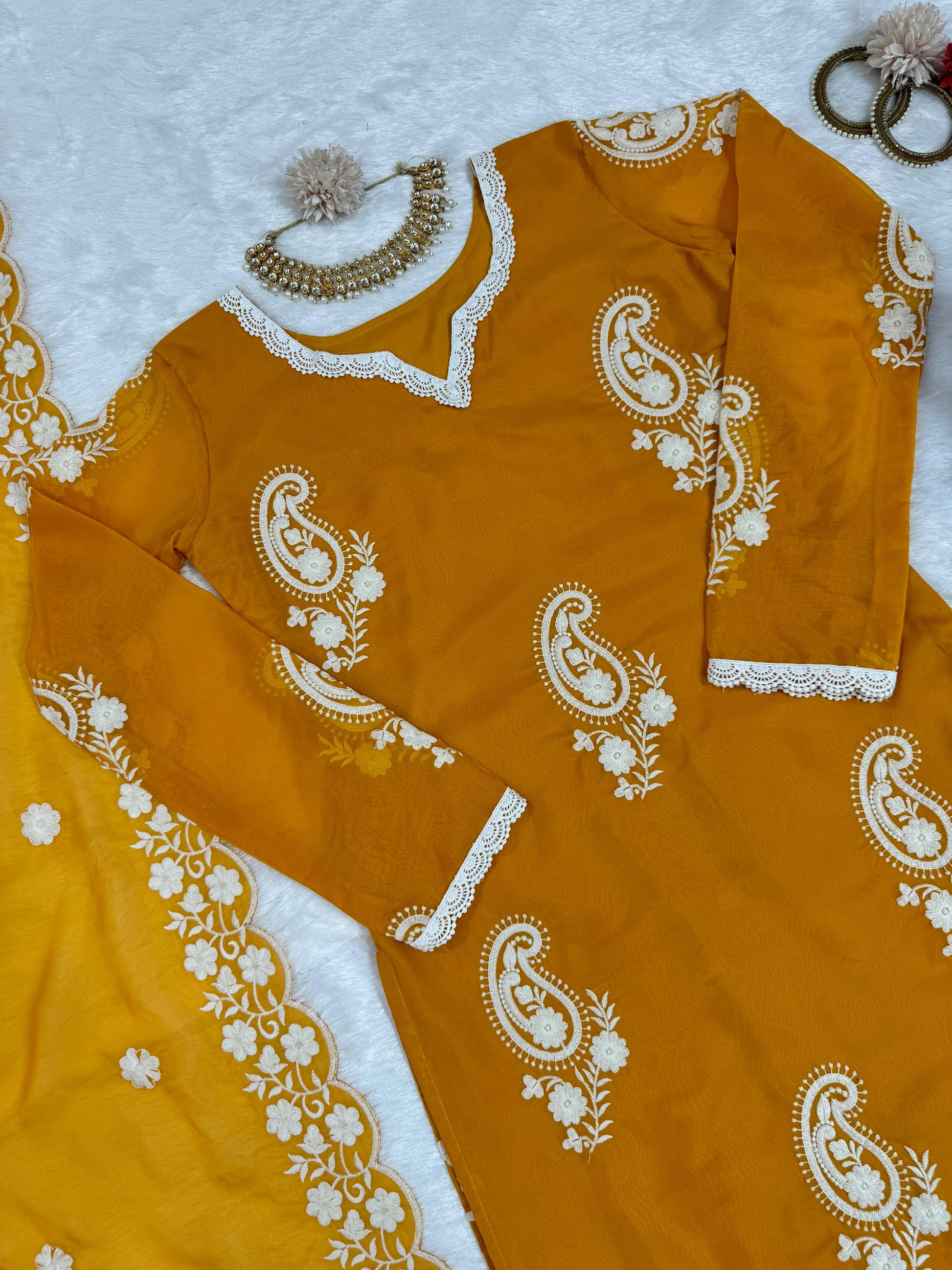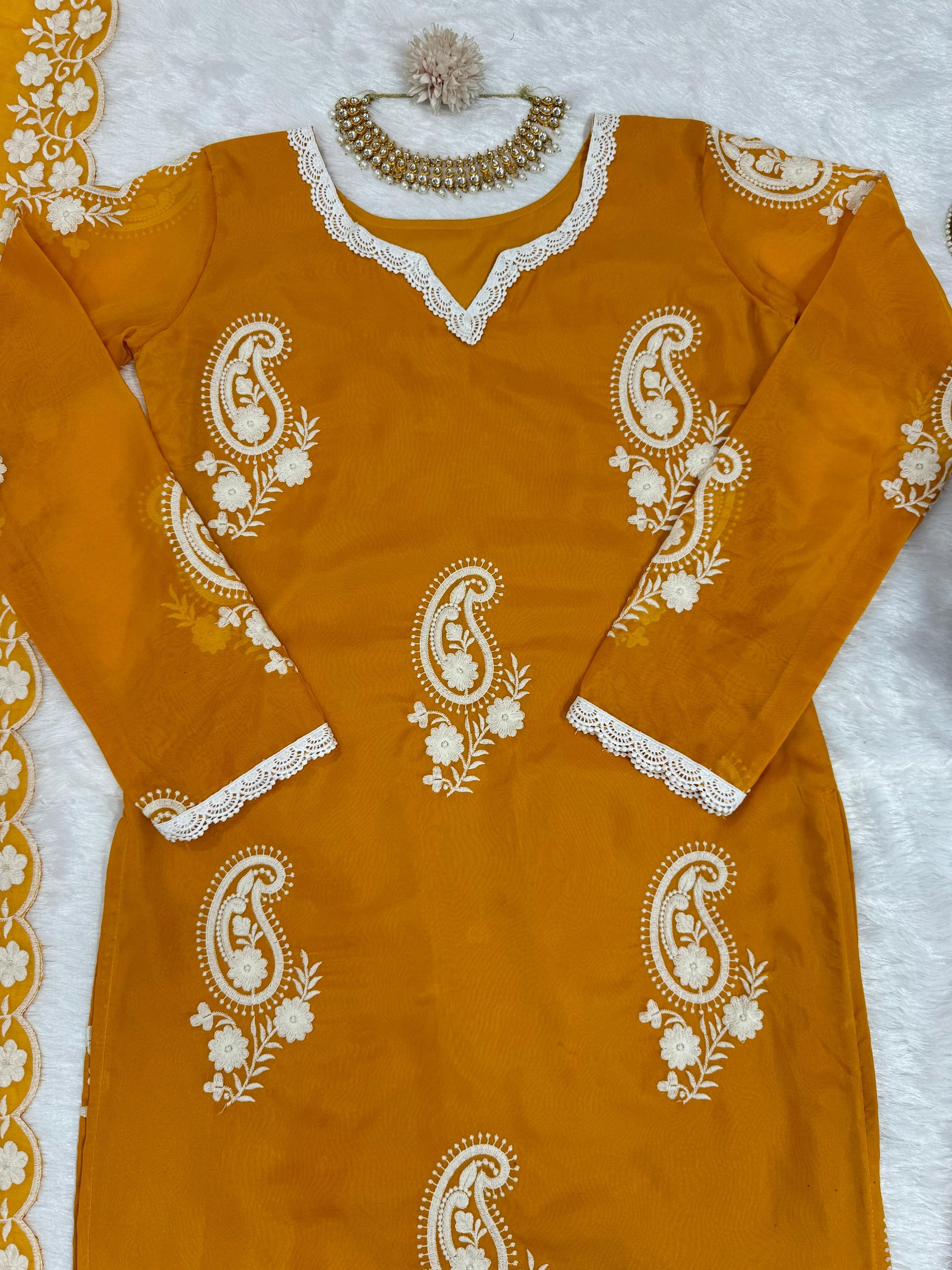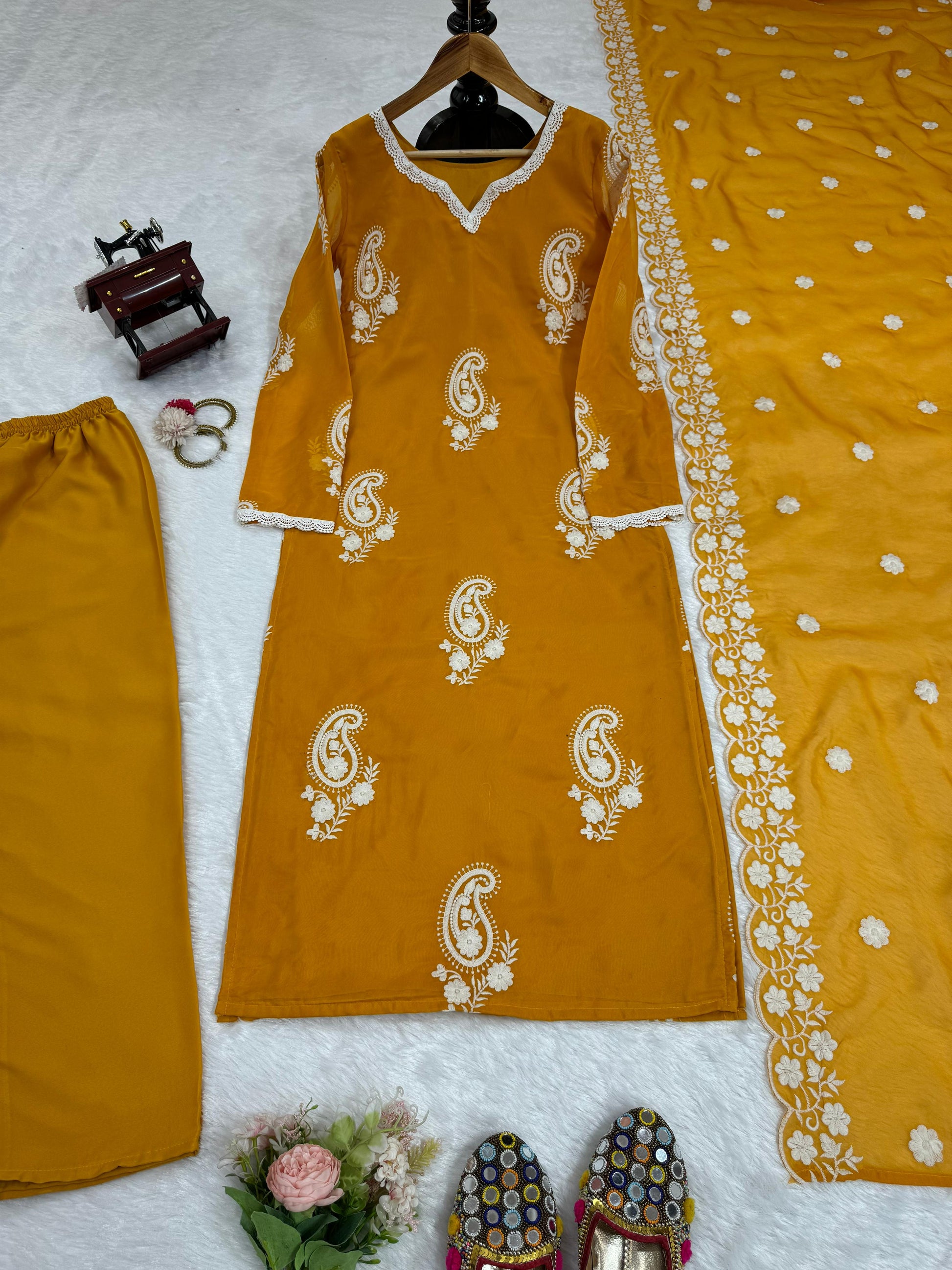 Looking for this same colour beautiful Designer Suit On Tibby Silk febric with inner and Thred work and Pent on Crep Febric and Dupatta on also Tibby Silk Febric with Thred work.