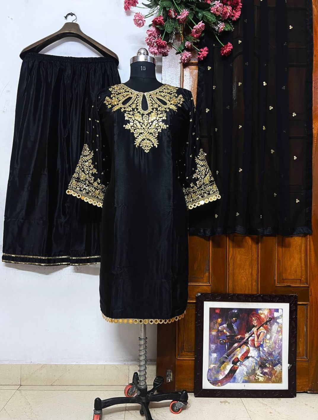 PRESENTING NEW KURTI-PLAZZO SET IN CHINON SILK FABRIC AND FANCY SEQUINS, ZARI EMBROIDERY WORK
