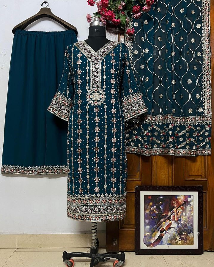 PRESENTING GOOD QUALITY BEAUTIFUL KURTA SET IN GEORGETTE FABRIC WITH AMAZING SEQUENCE & THREAD EMBROIDERY WORK & DIAMOND WORK