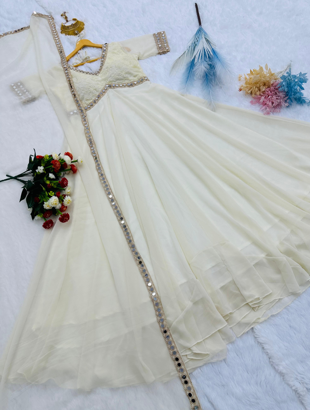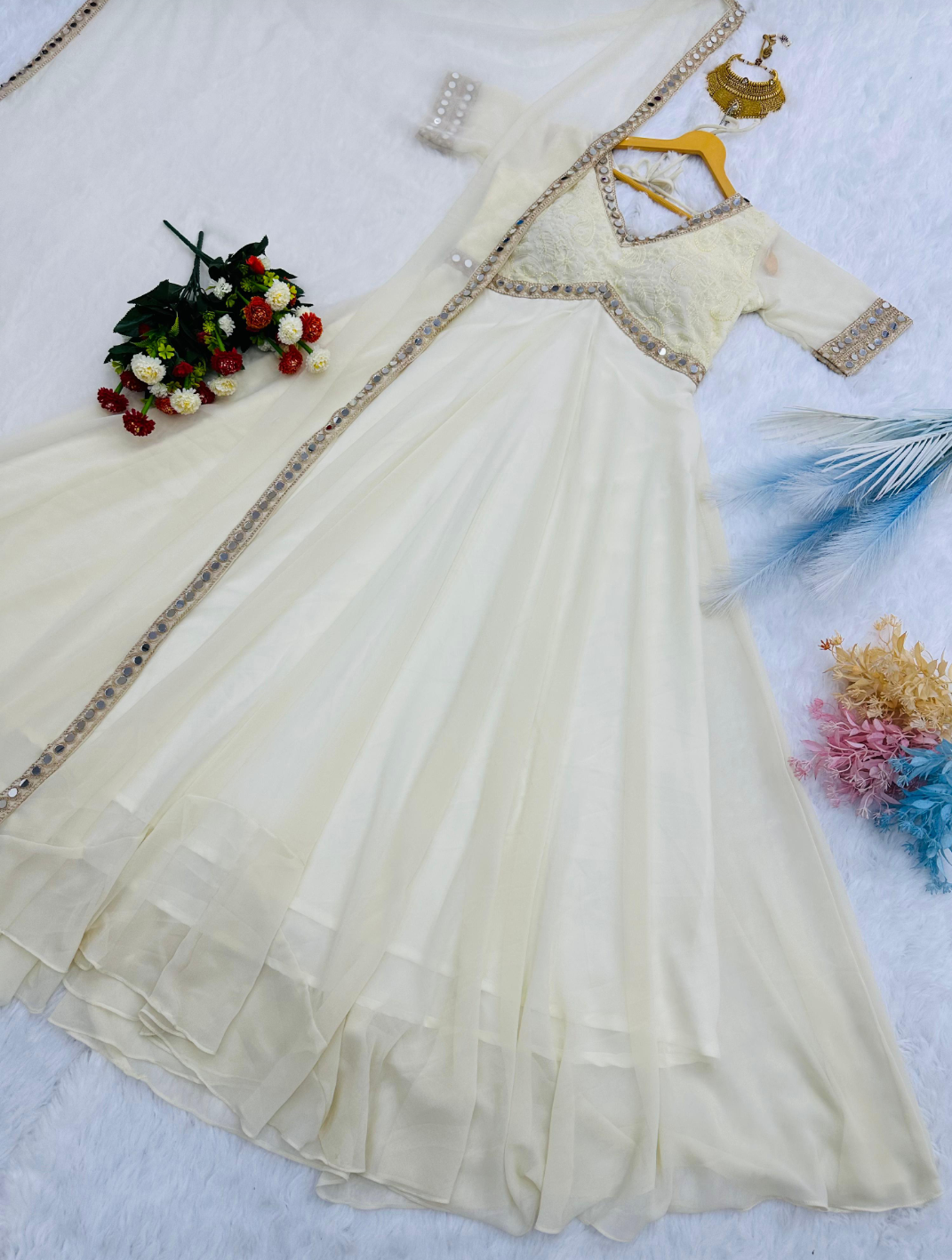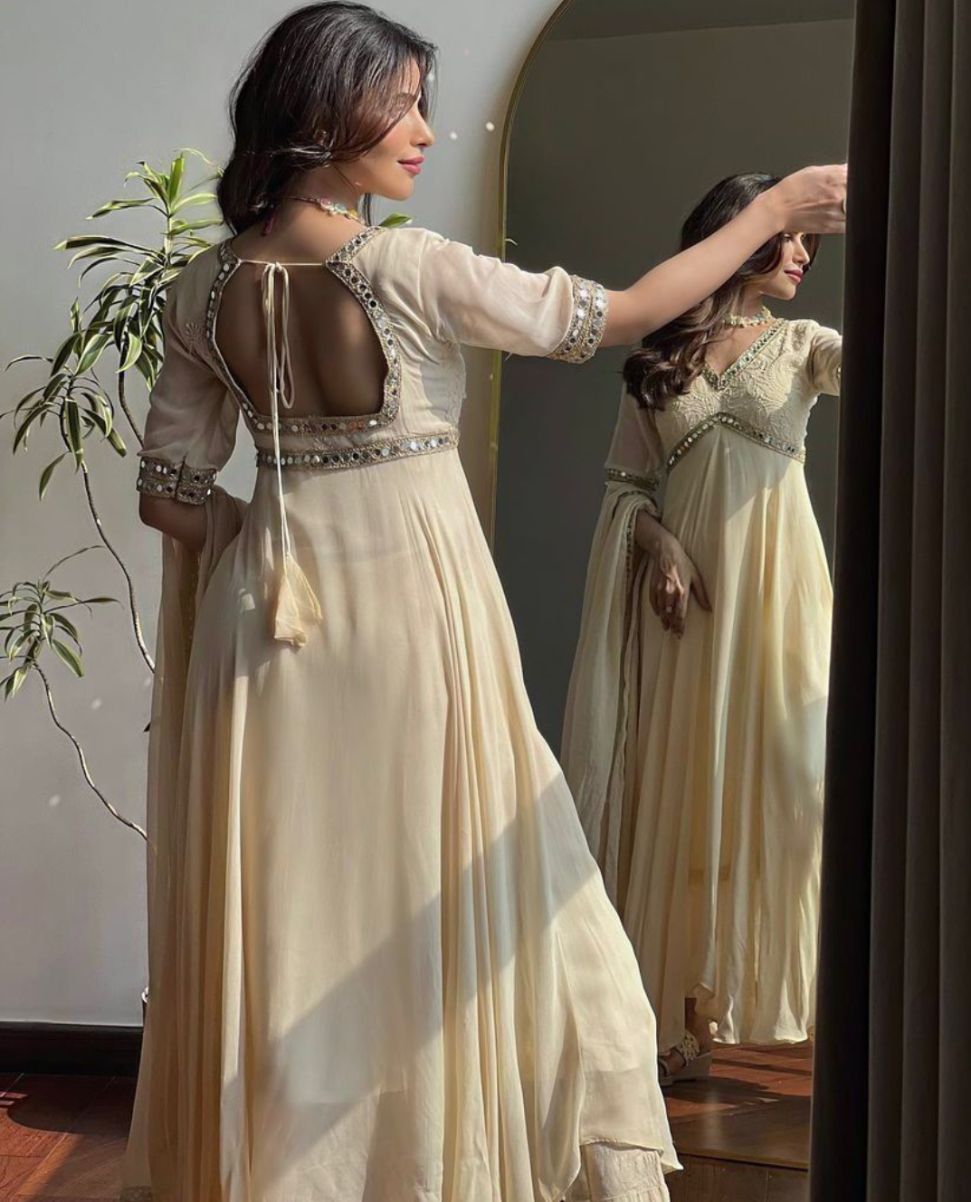 Work : Embroidery Chikankari Work & Real Mirror Work