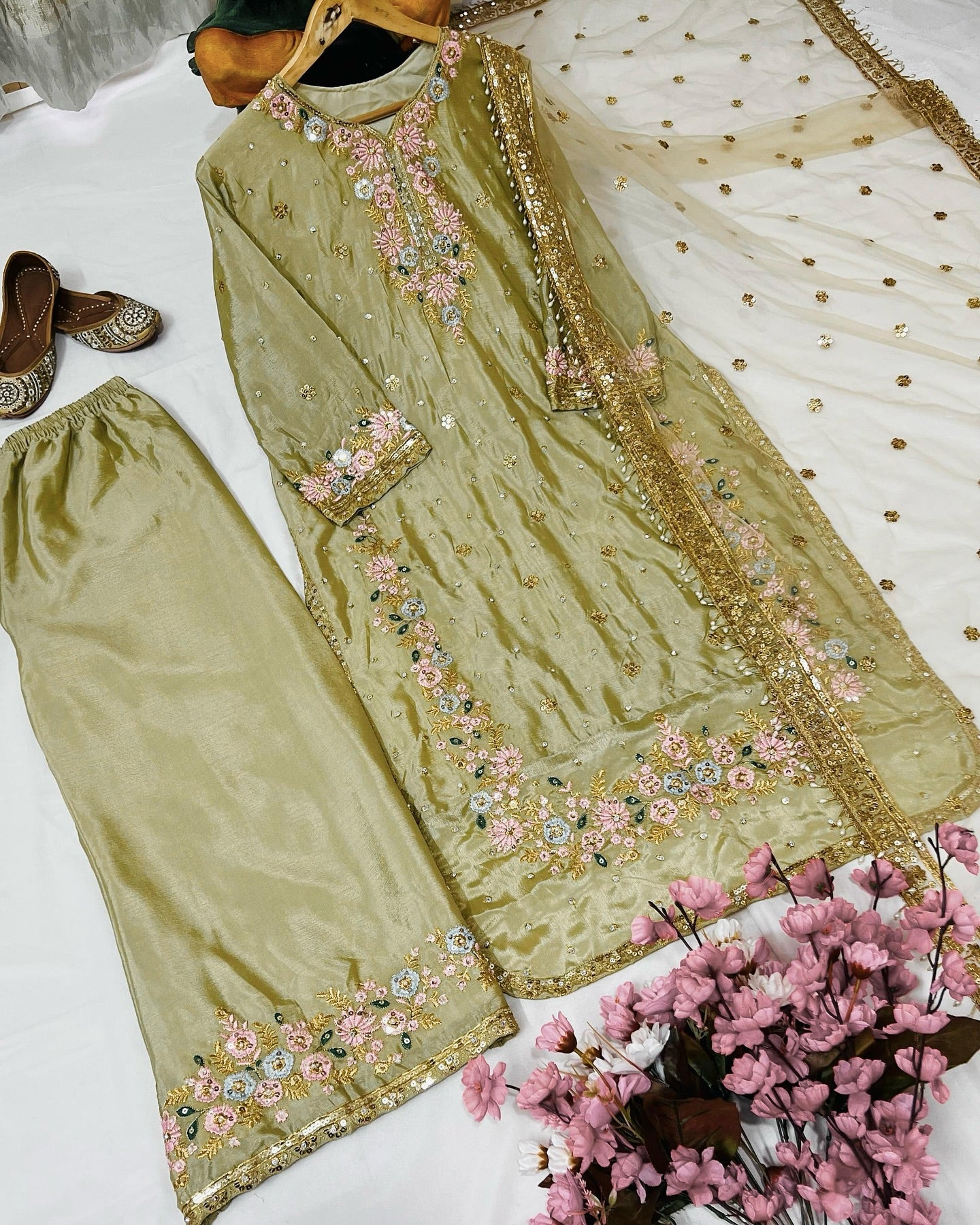 Work : Sequence & zari embroidery work, pearl & diamond material hand work