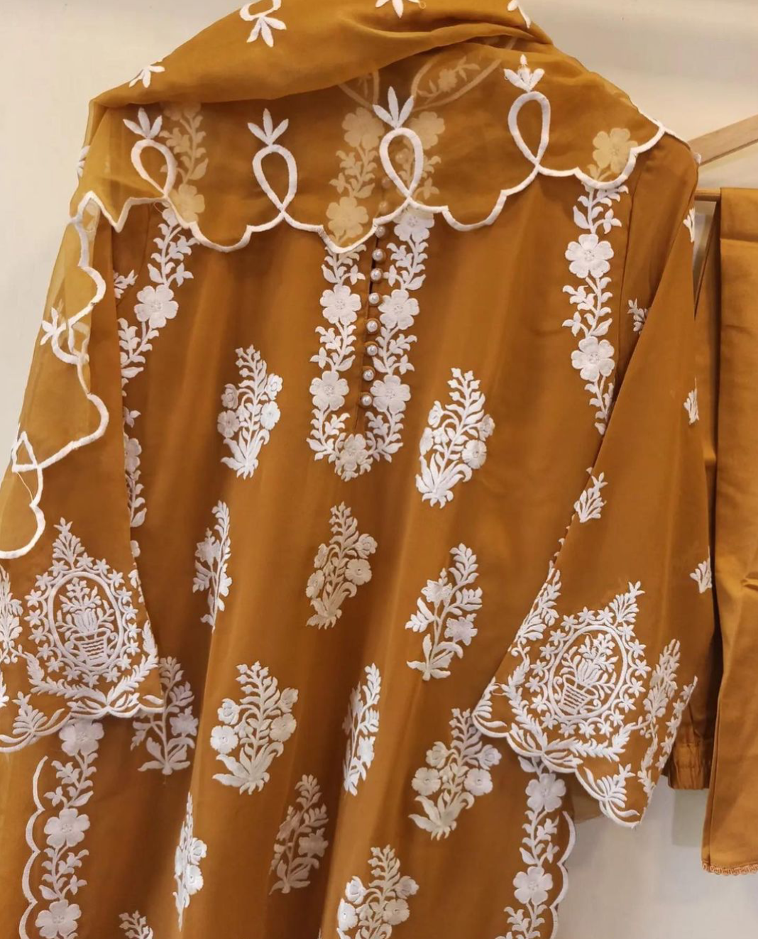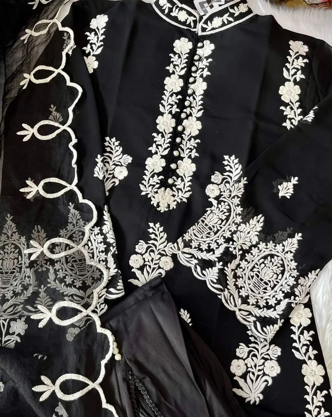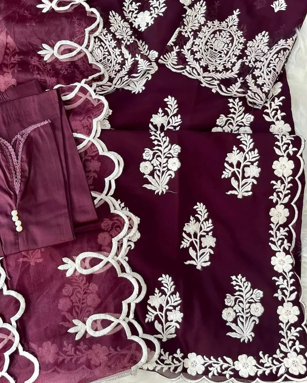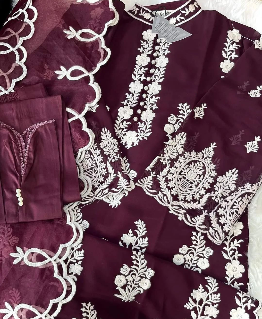 Dupatta: Organza with embroidery.