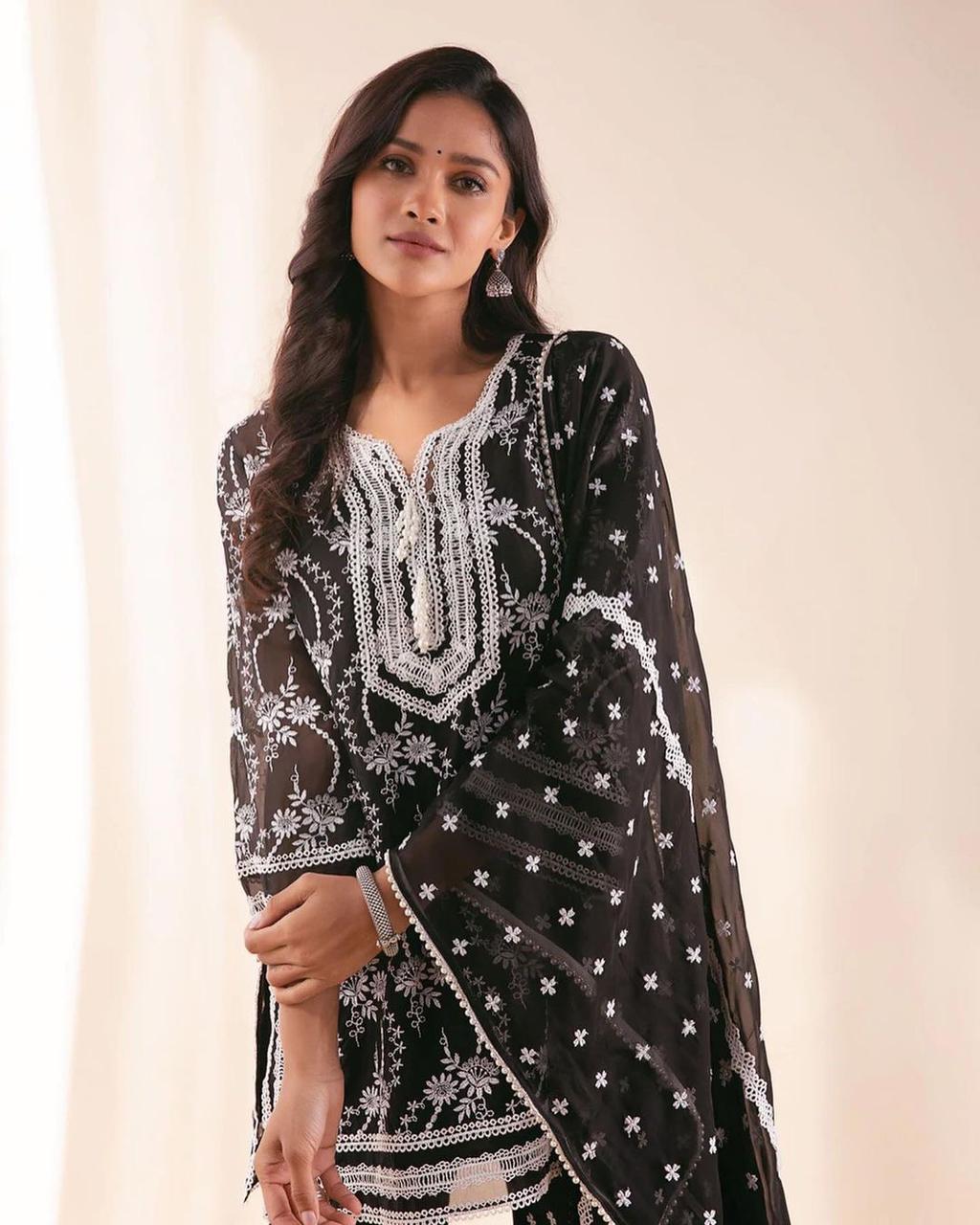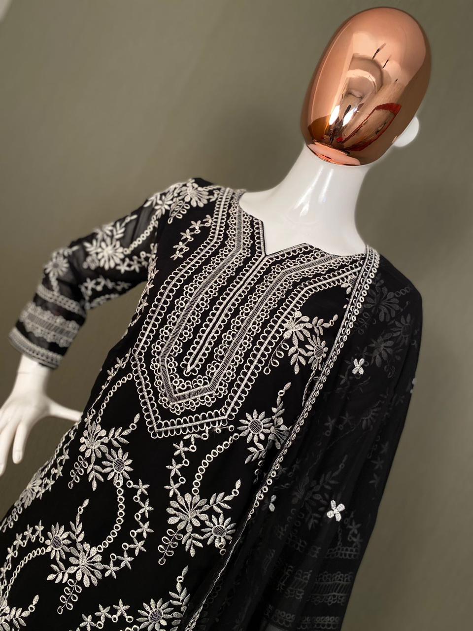 SUIT FABRICS: GEORGETTE WITH COTTON THREADS EMBROIDERY WORKS