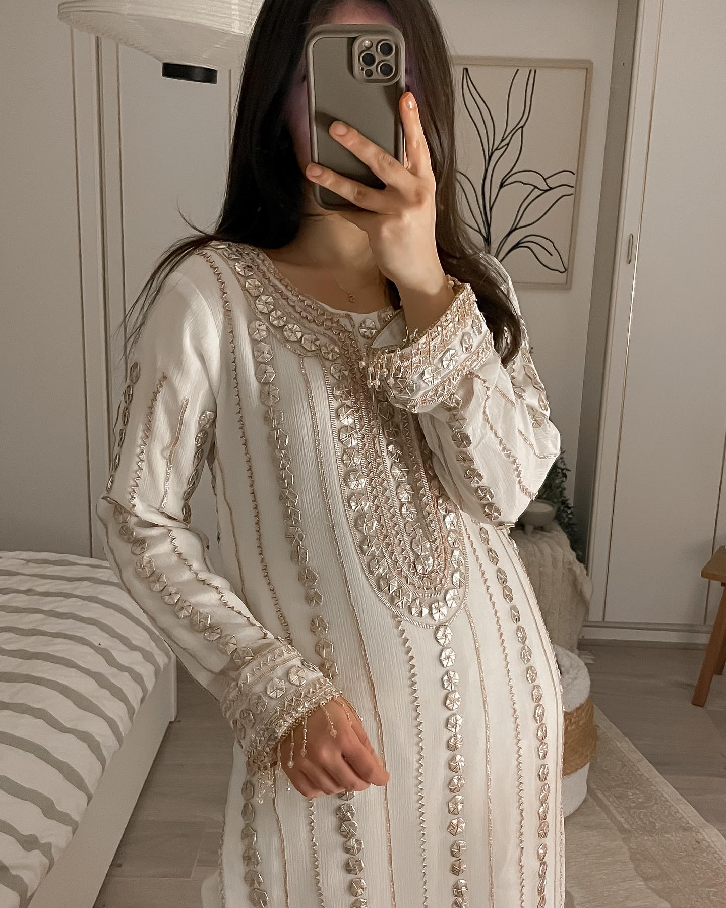 FABRIC DETAILS: Heavy chiffon shirt (inner) full of gota work, Comes with heavy Stunning chiffon gota Dupatta and bottom