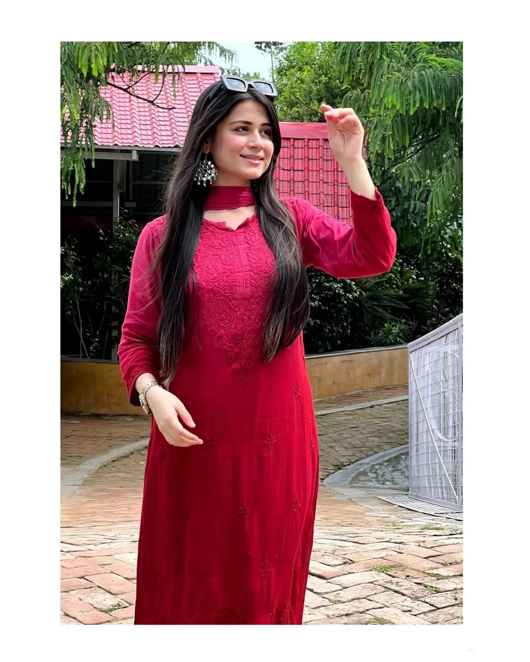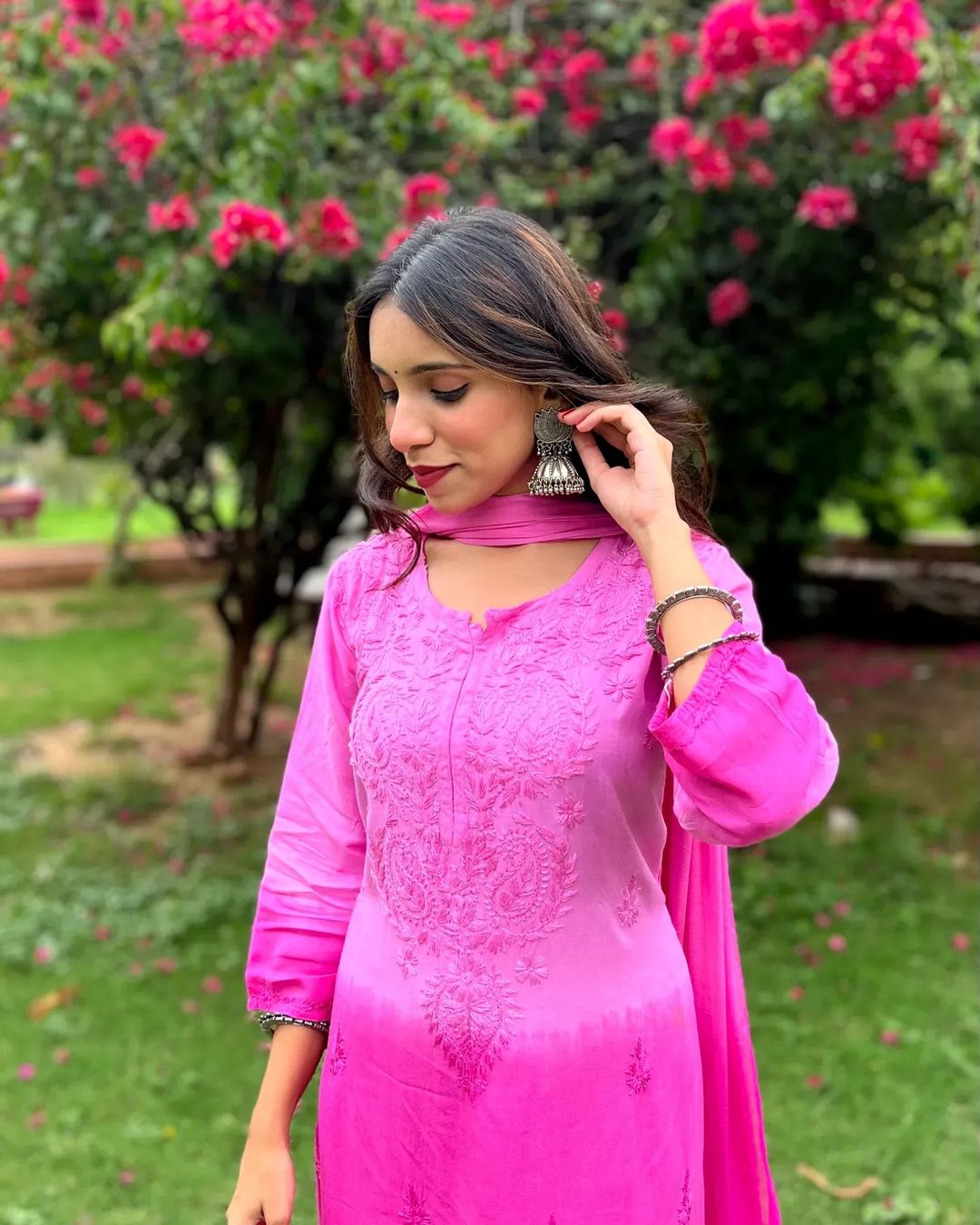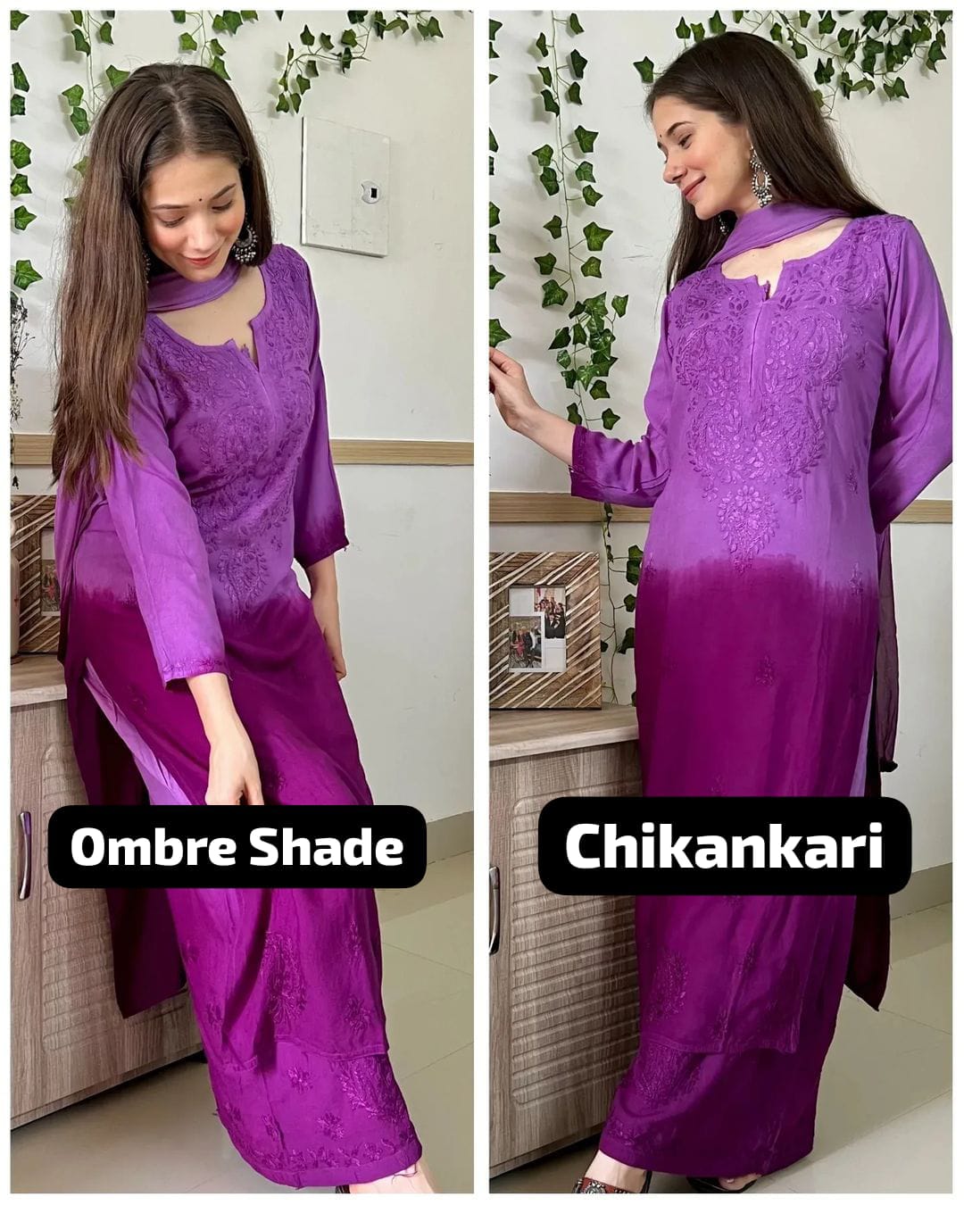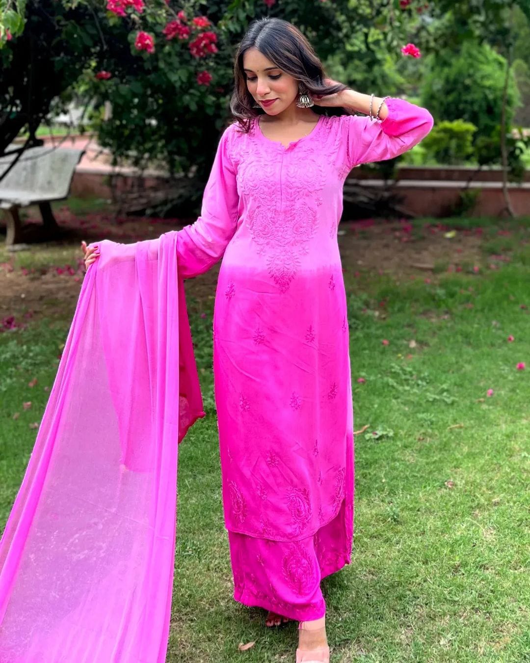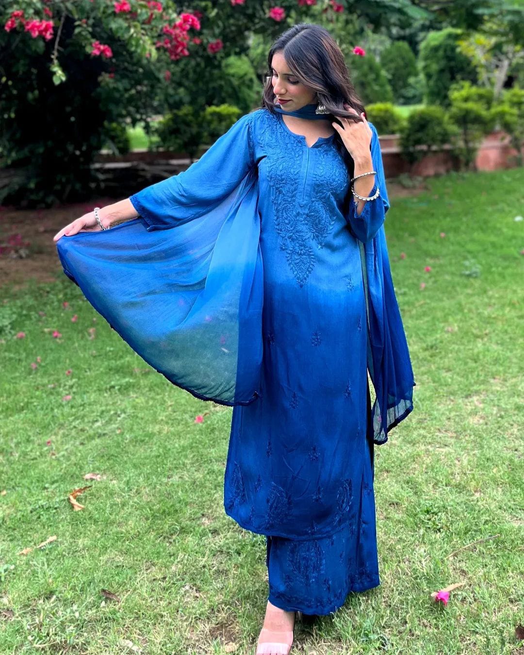 Soft rayon ombre dyed intricately handworked chikankari kurt Palazzo duppata full set
