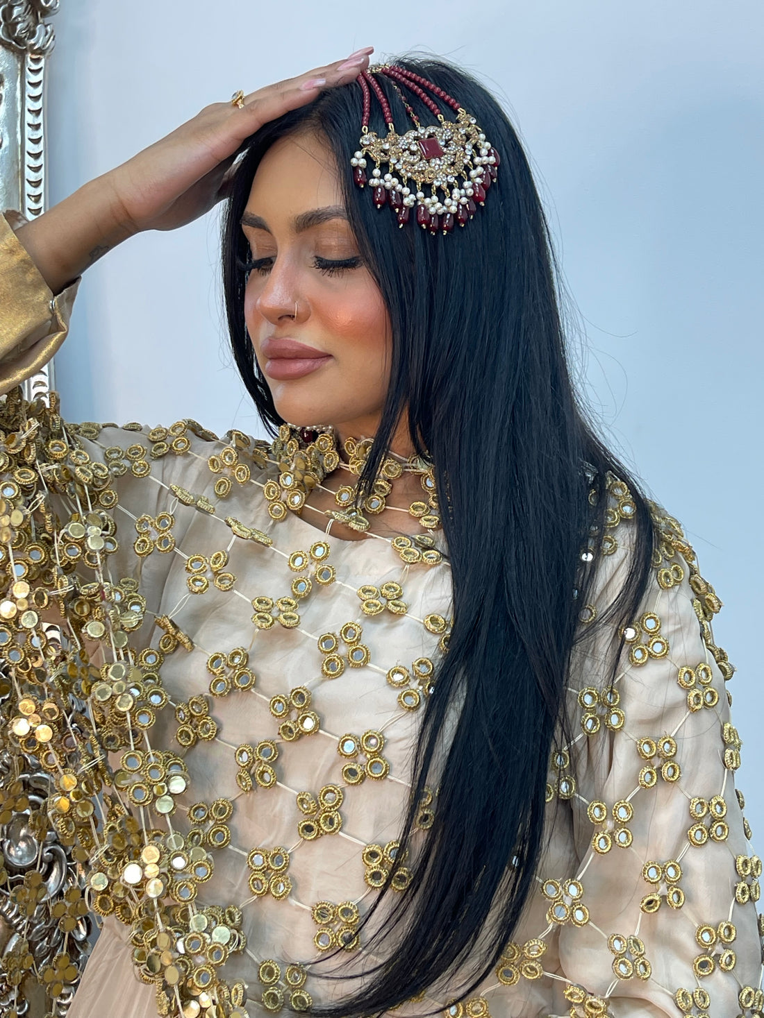 This trendy posheeda sheesh piece has graced the looks of style icons like Hania Amir and Kareena Kapoor, making it a true fashion statement for the modern woman with a love for heritage. Perfect to pair with lehengas, anarkalis, or kurta sets — it adds a majestic sparkle to every step you take.