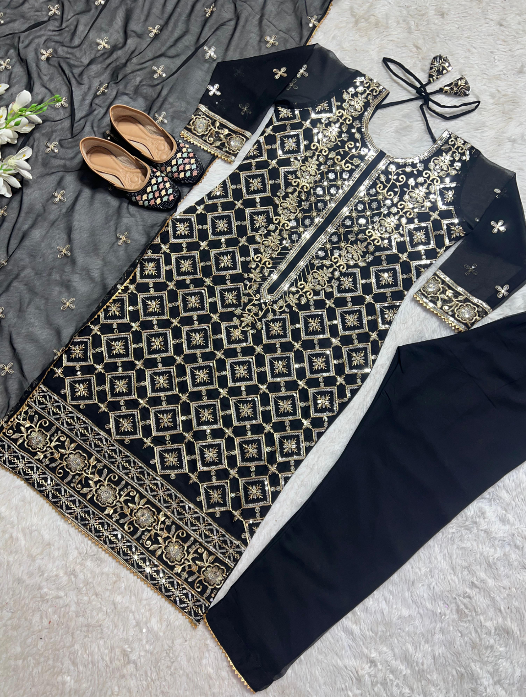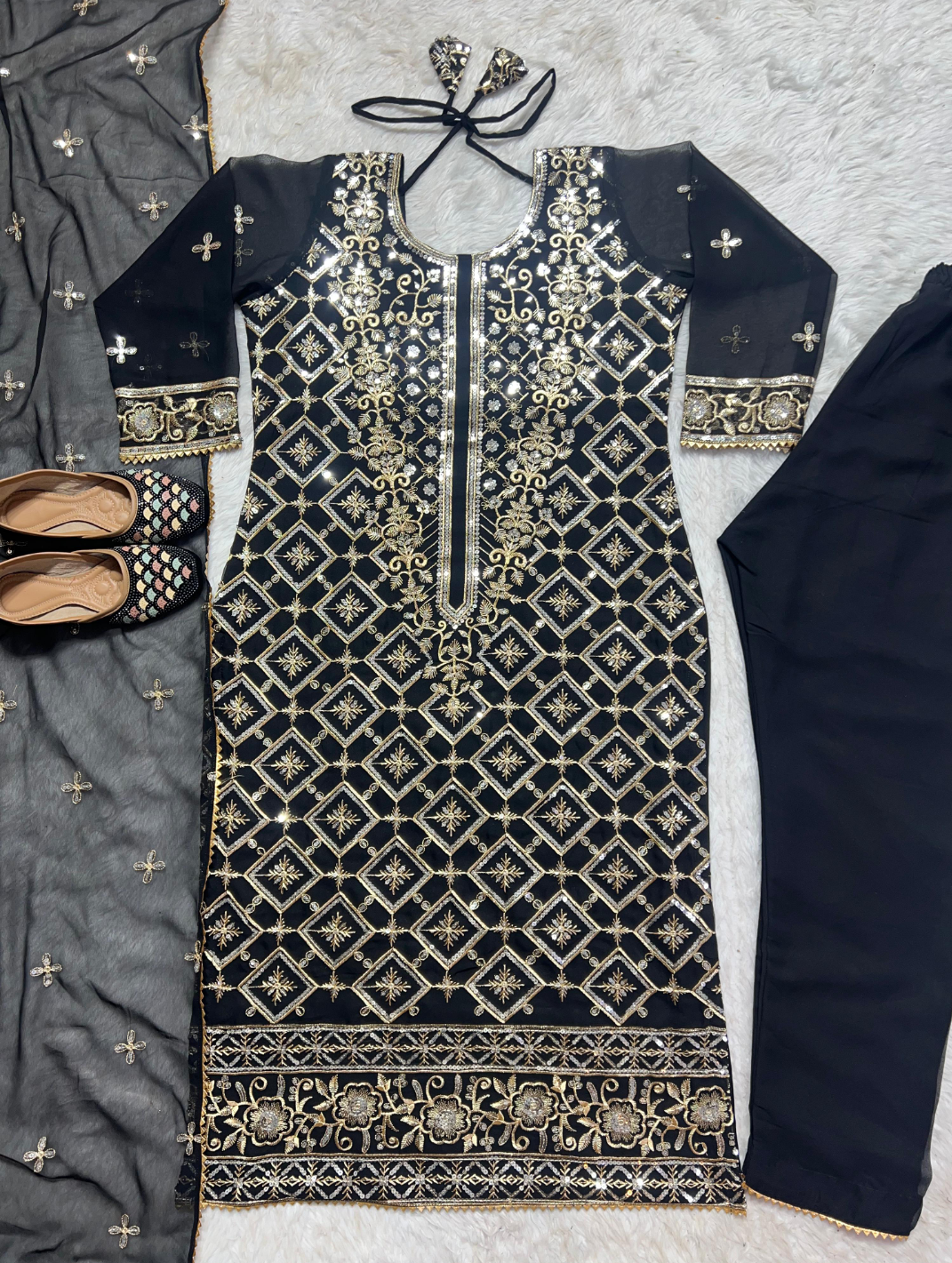 Top Fabric : Heavy Georgette Fabric With Heavy Embroidery 5mm Sequence Work.