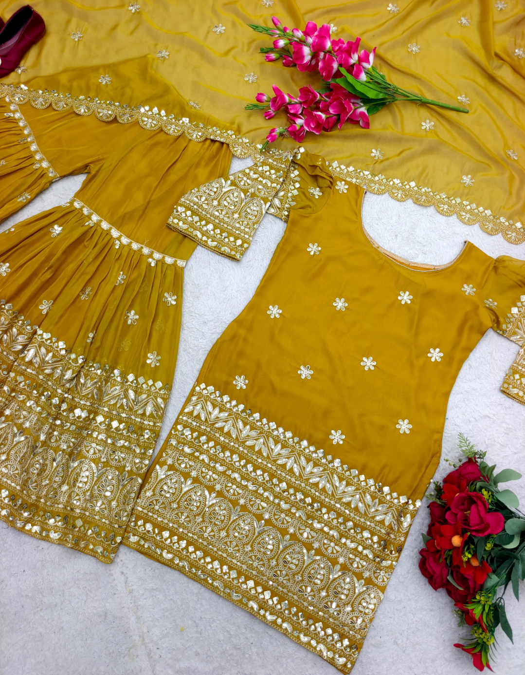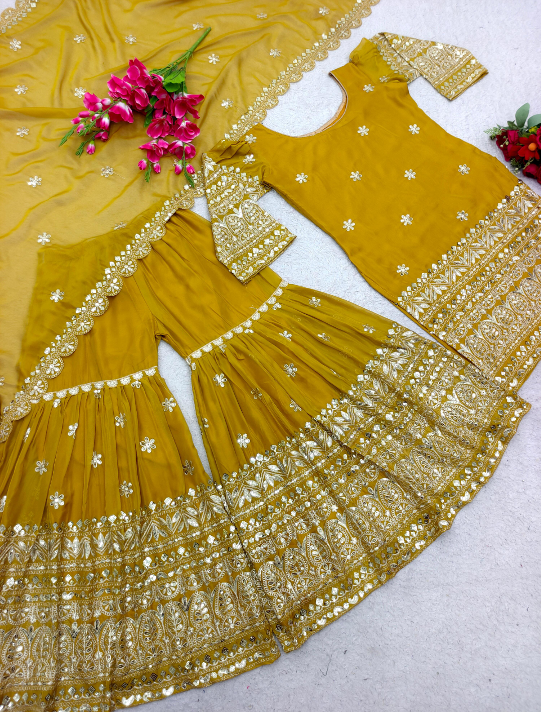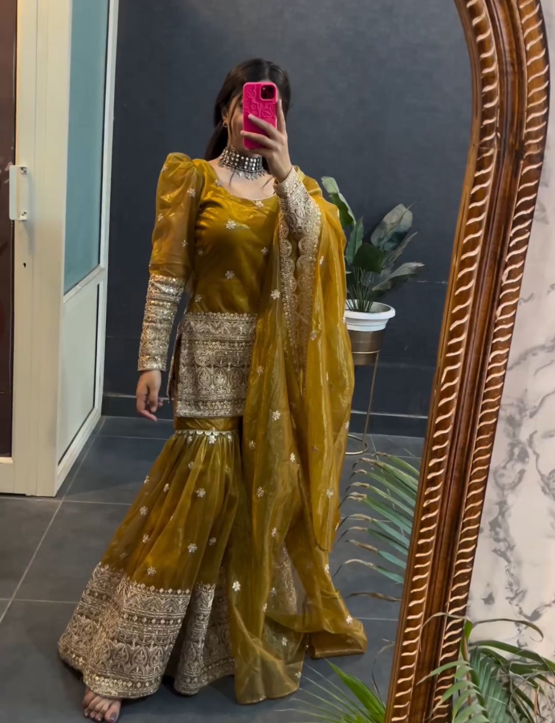 Sharara Fabric : Heavy Rasiyan Silk With 5mm Siqwans Embroidery Work With Elastic Rubber