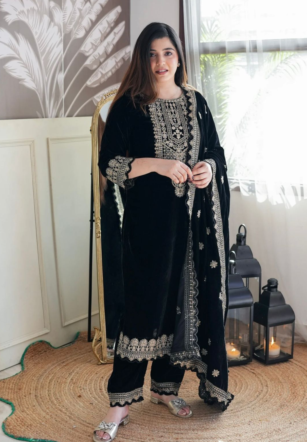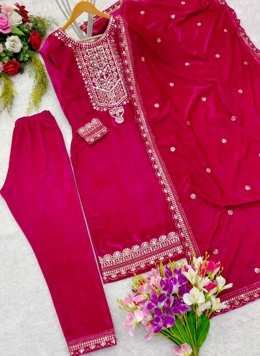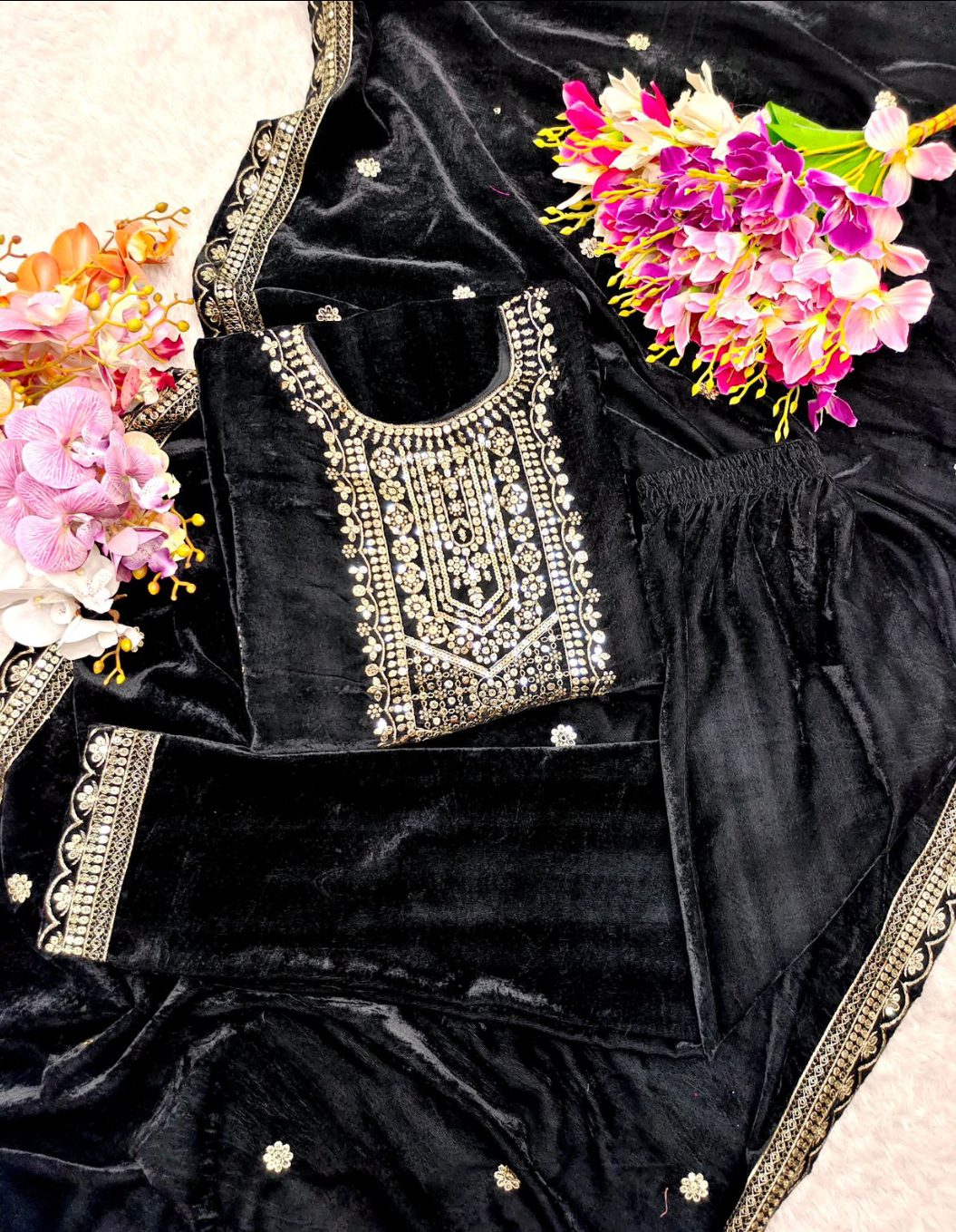 Presenting New Velvet Top Pant Dupatta Set Fully Stitched Ready To Wear
