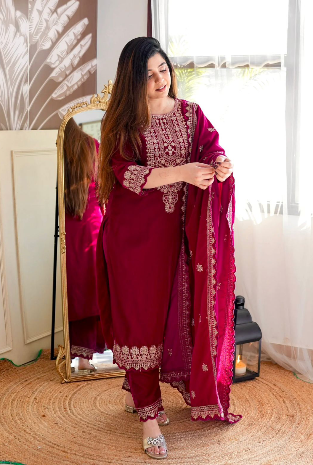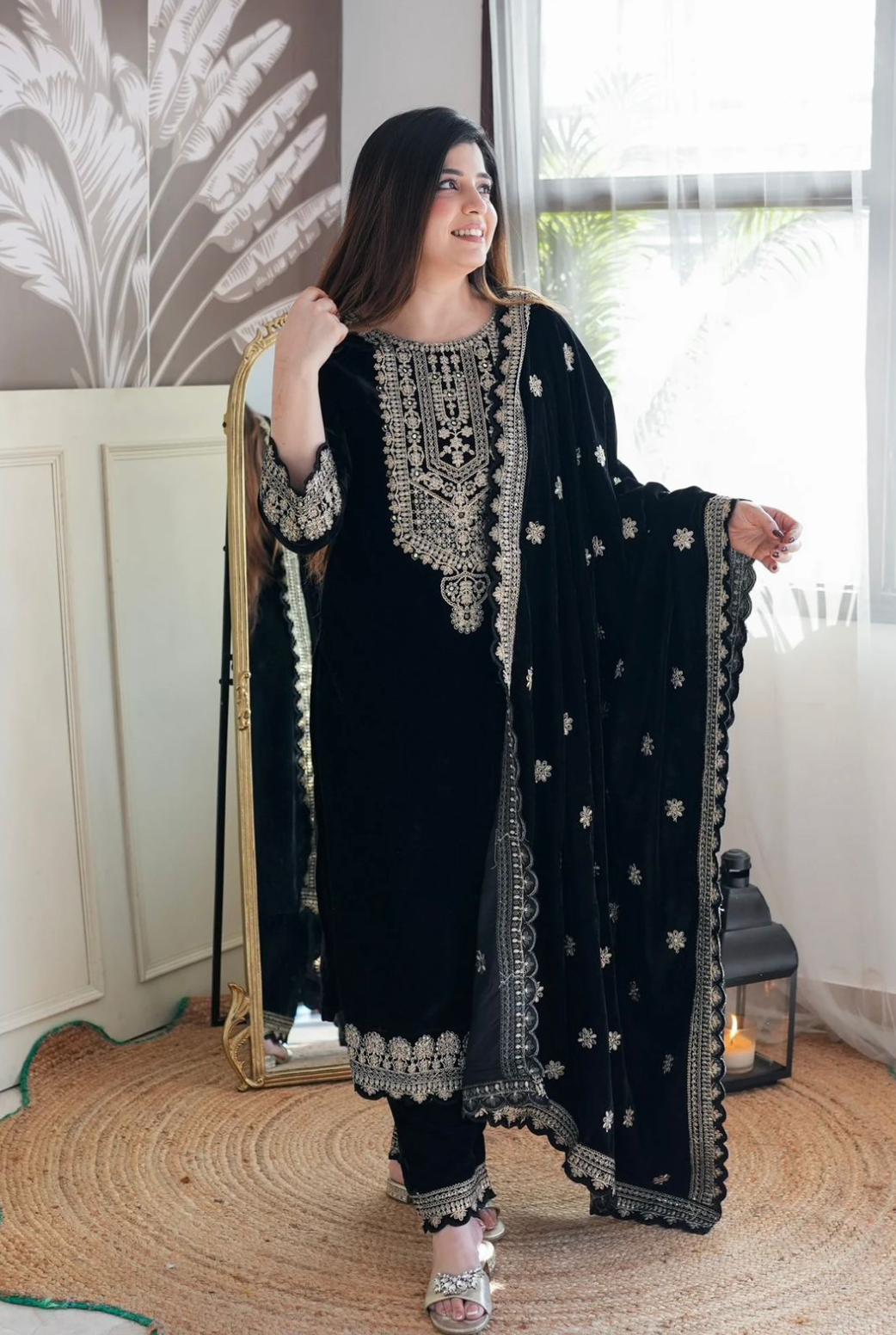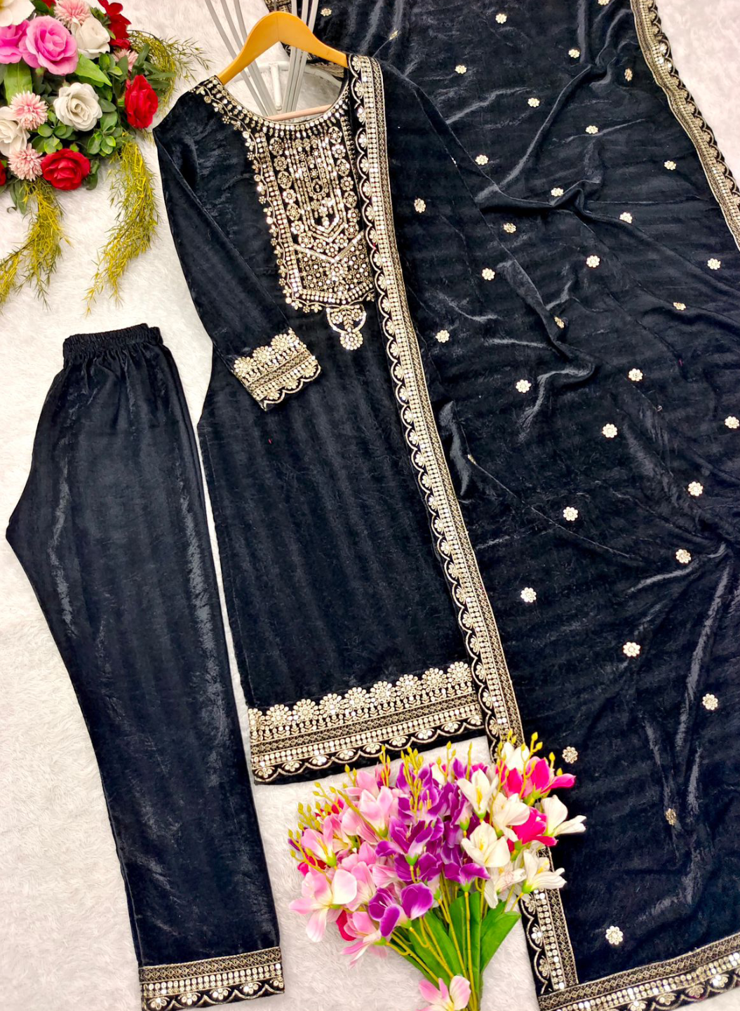 Presenting New Velvet Top Pant Dupatta Set Fully Stitched Ready To Wear