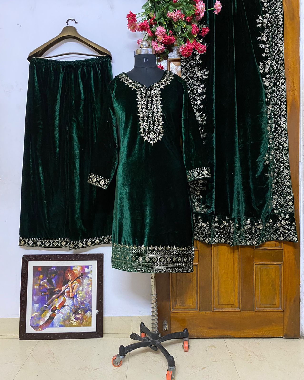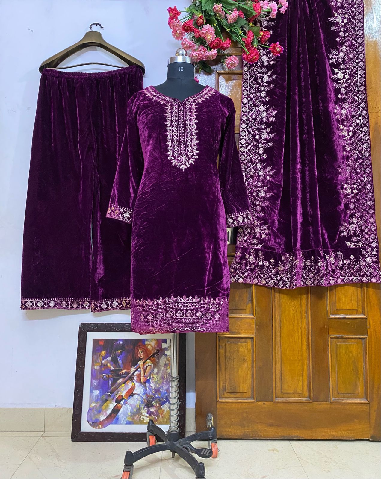 GOOD QUALITY HEAVY VELVET TOP WITH BEAUTIFUL EMBROIDERED & HEAVY VELVET PLAZZO