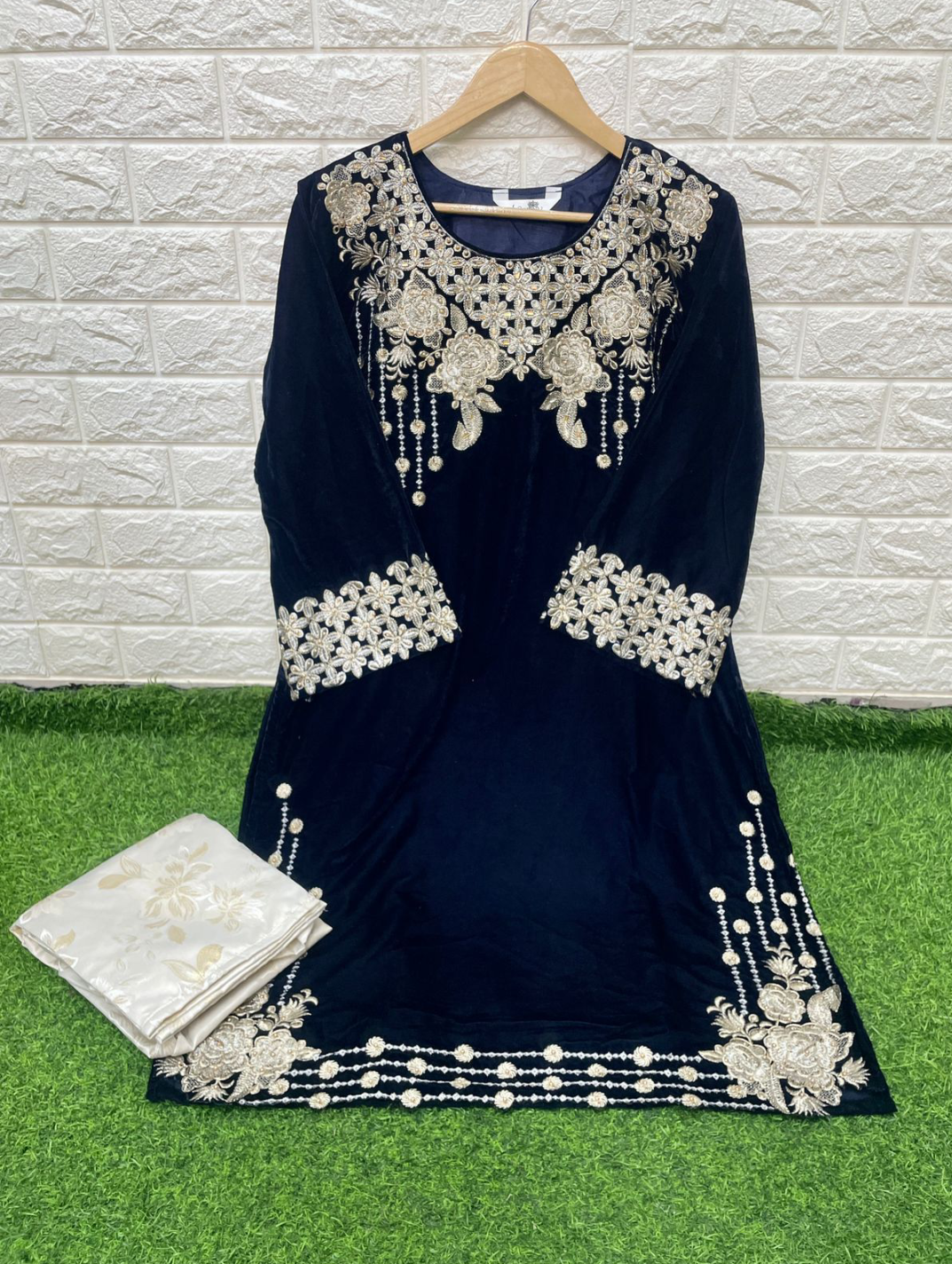 Designer Embroidery Velvet Tunic ‼️With Diamonds & Neck Pattern With Embroidery Sleeves Paired with Jecquard Fabric Straight Pant.