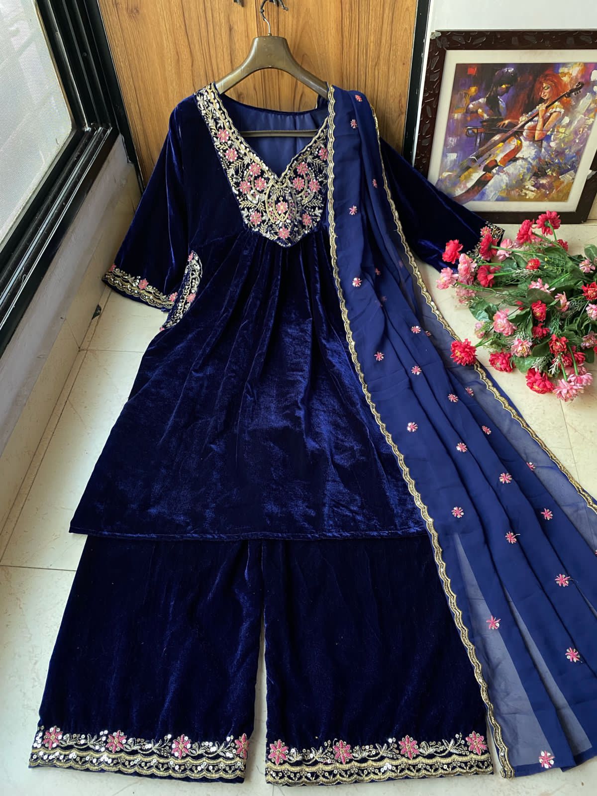 GOOD QUALITY HEAVY VELVET TOP WITH BEAUTIFUL EMBROIDERED & HEAVY VELVET PLAZZO