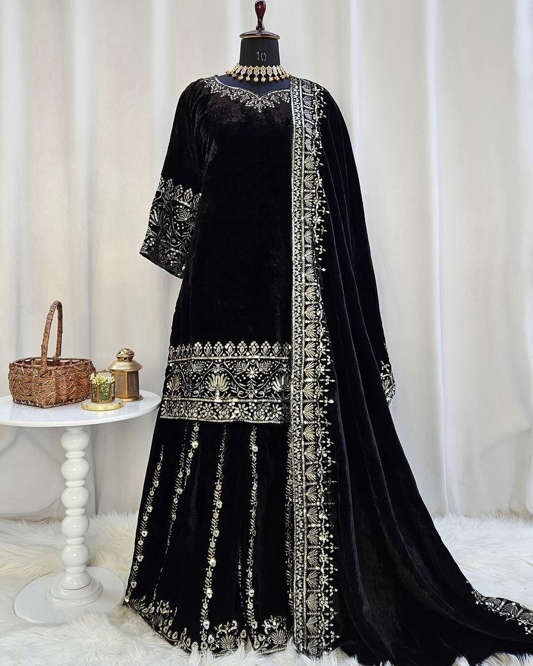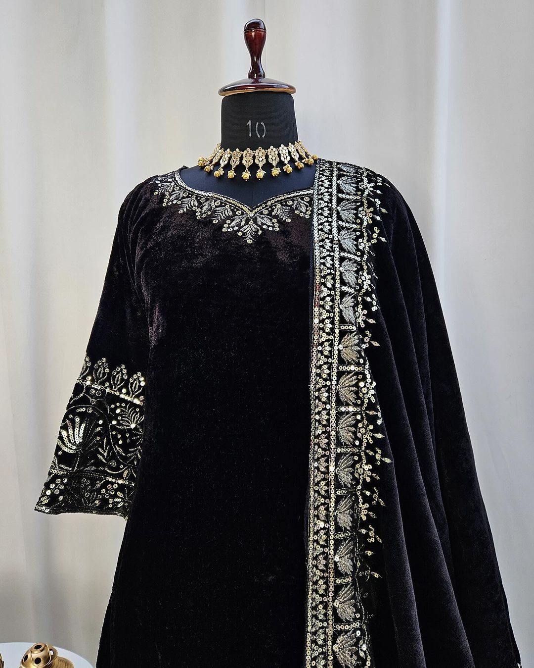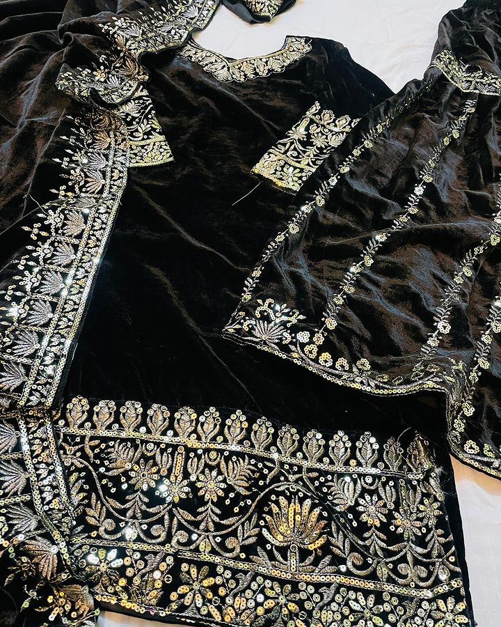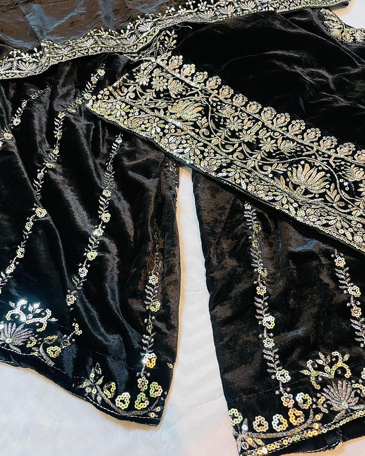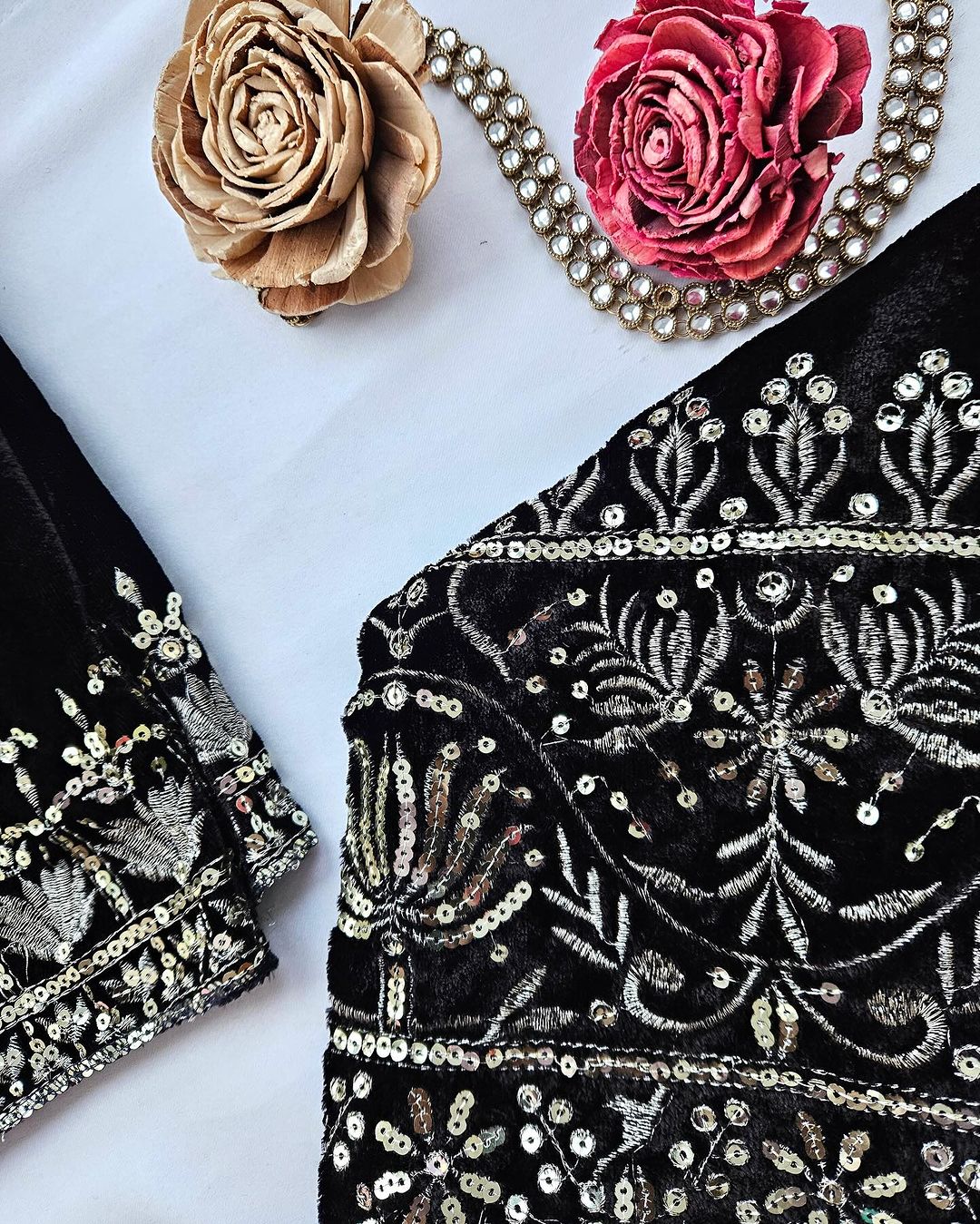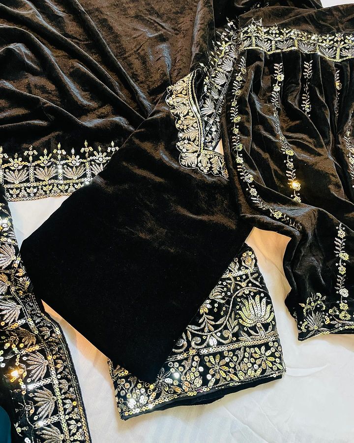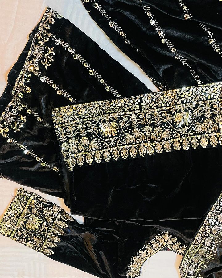 Bottom Fabric : Heavy Viscose Velvet With Heavy Embroidery Sequence Work