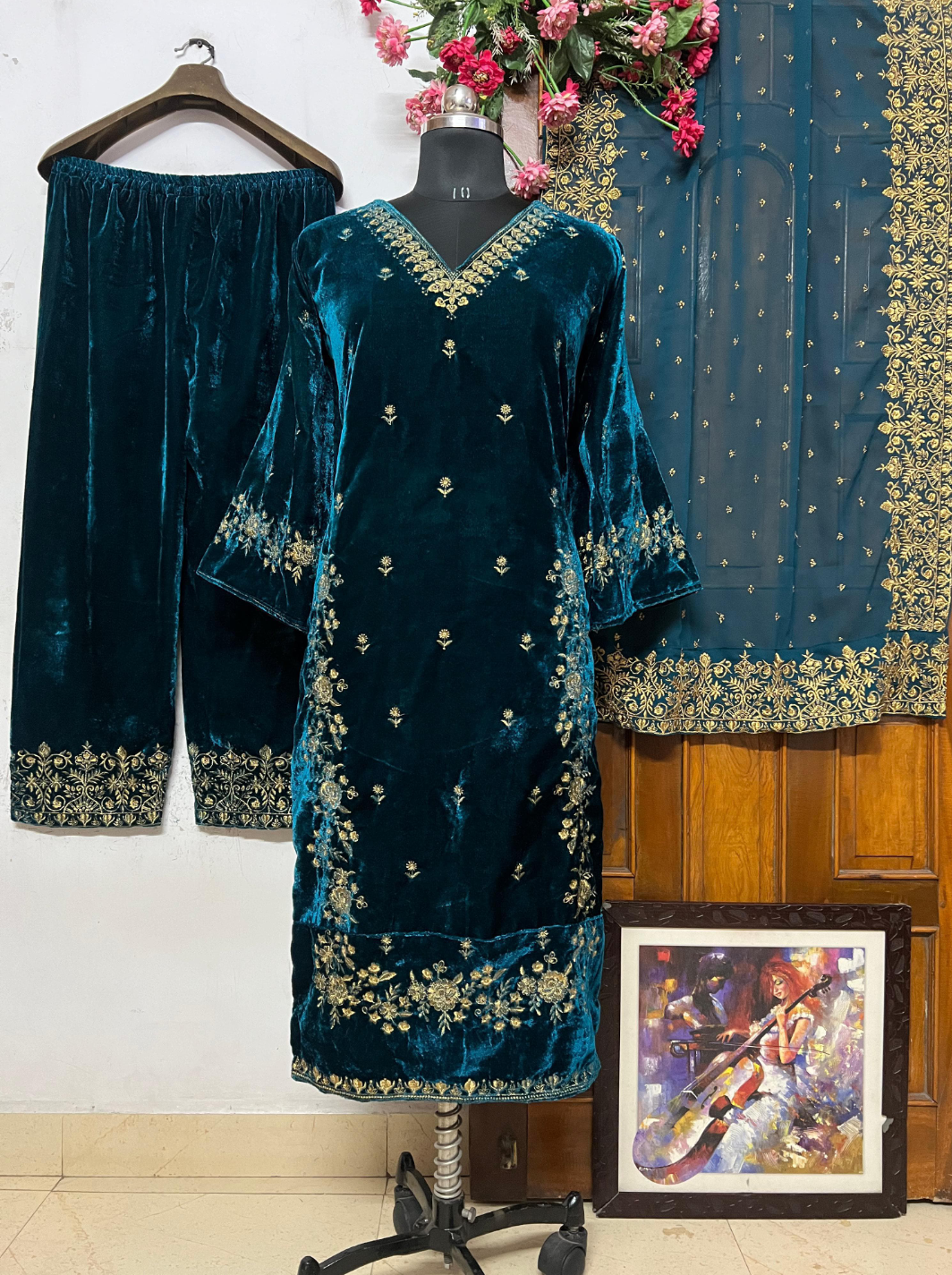GOOD QUALITY HEAVY VELVET TOP WITH BEAUTIFUL EMBROIDERED & HEAVY VELVET PLAZZO