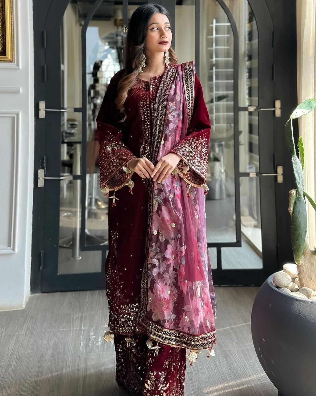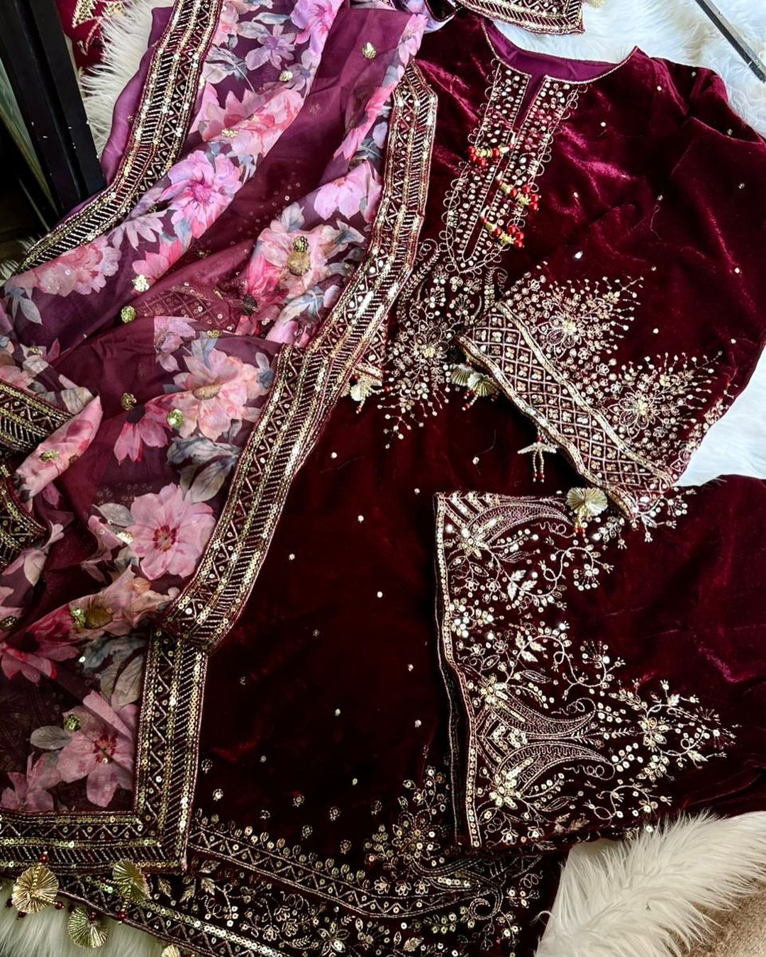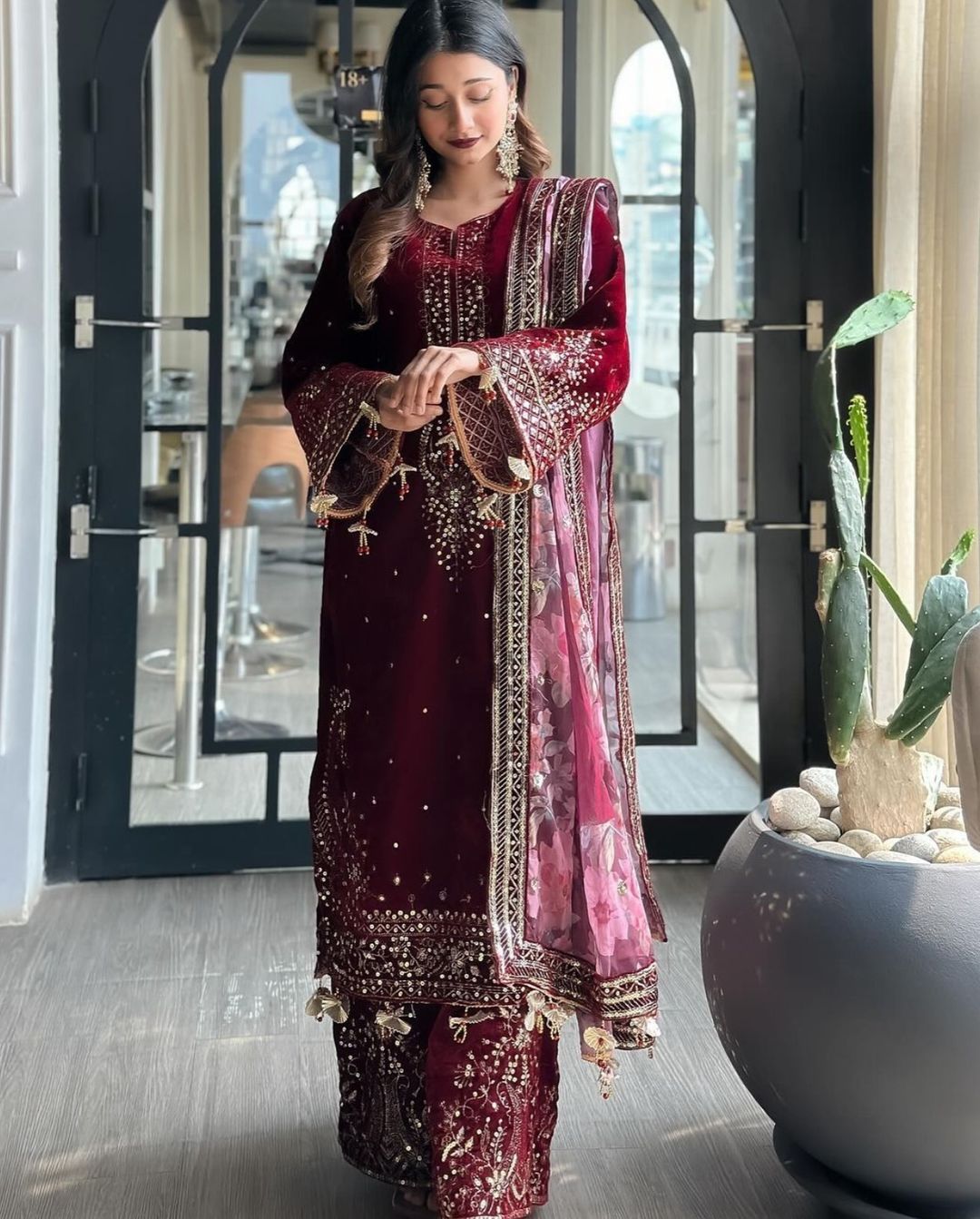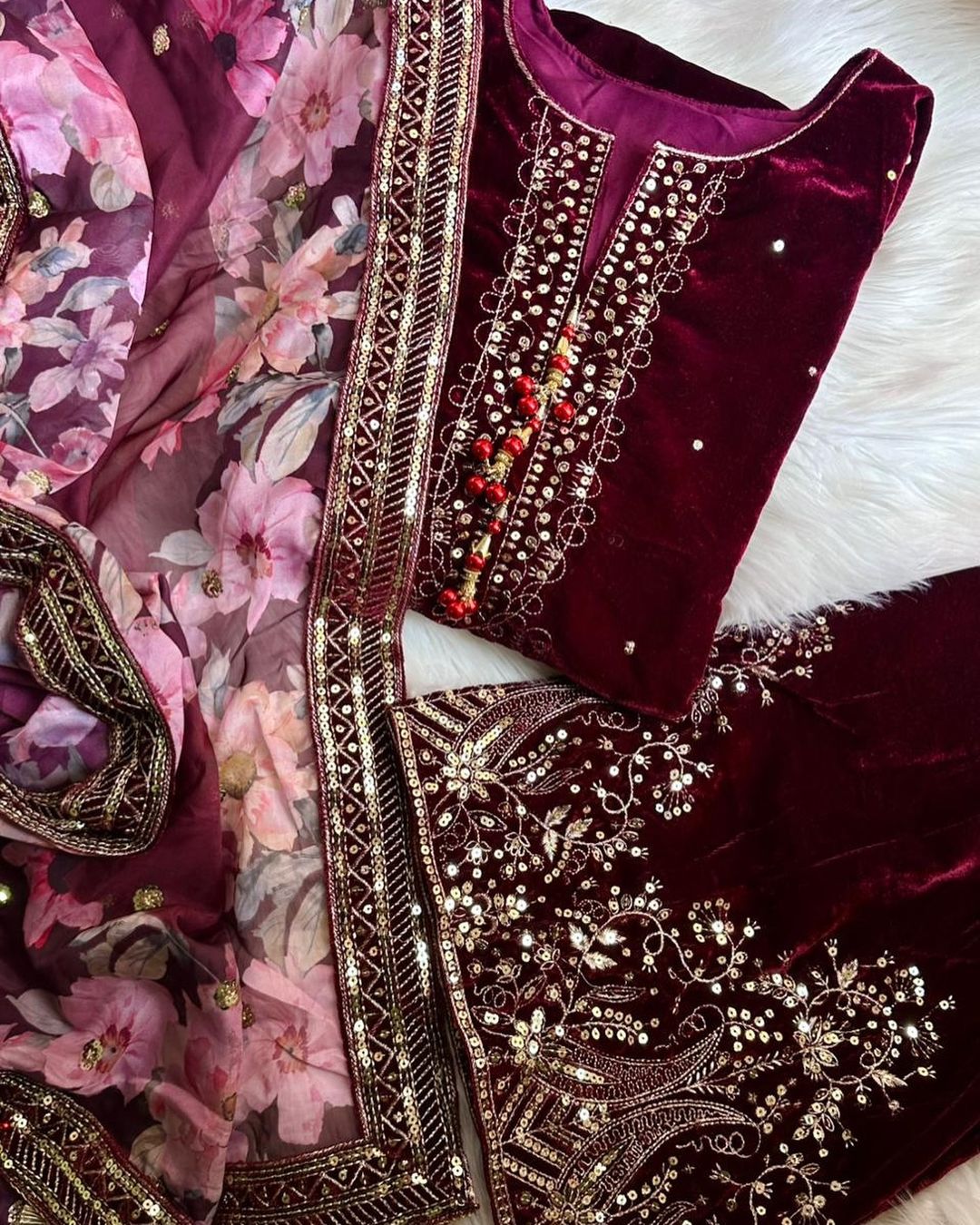 Plazo : Heavy Viscose Velvet with matching 5 mm sequin embroidery