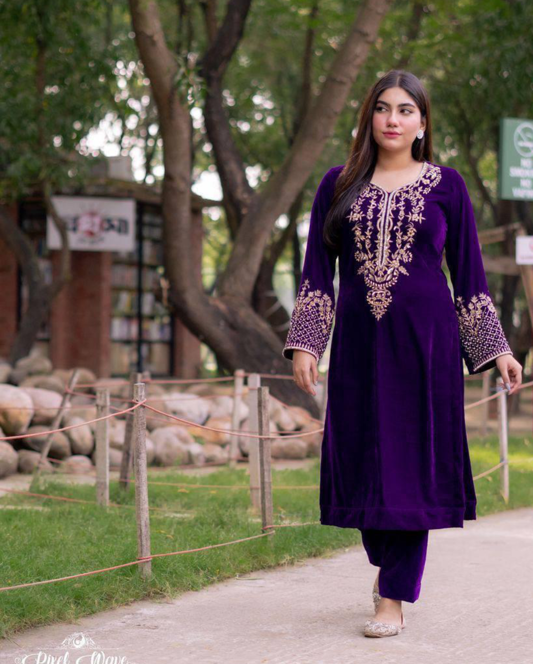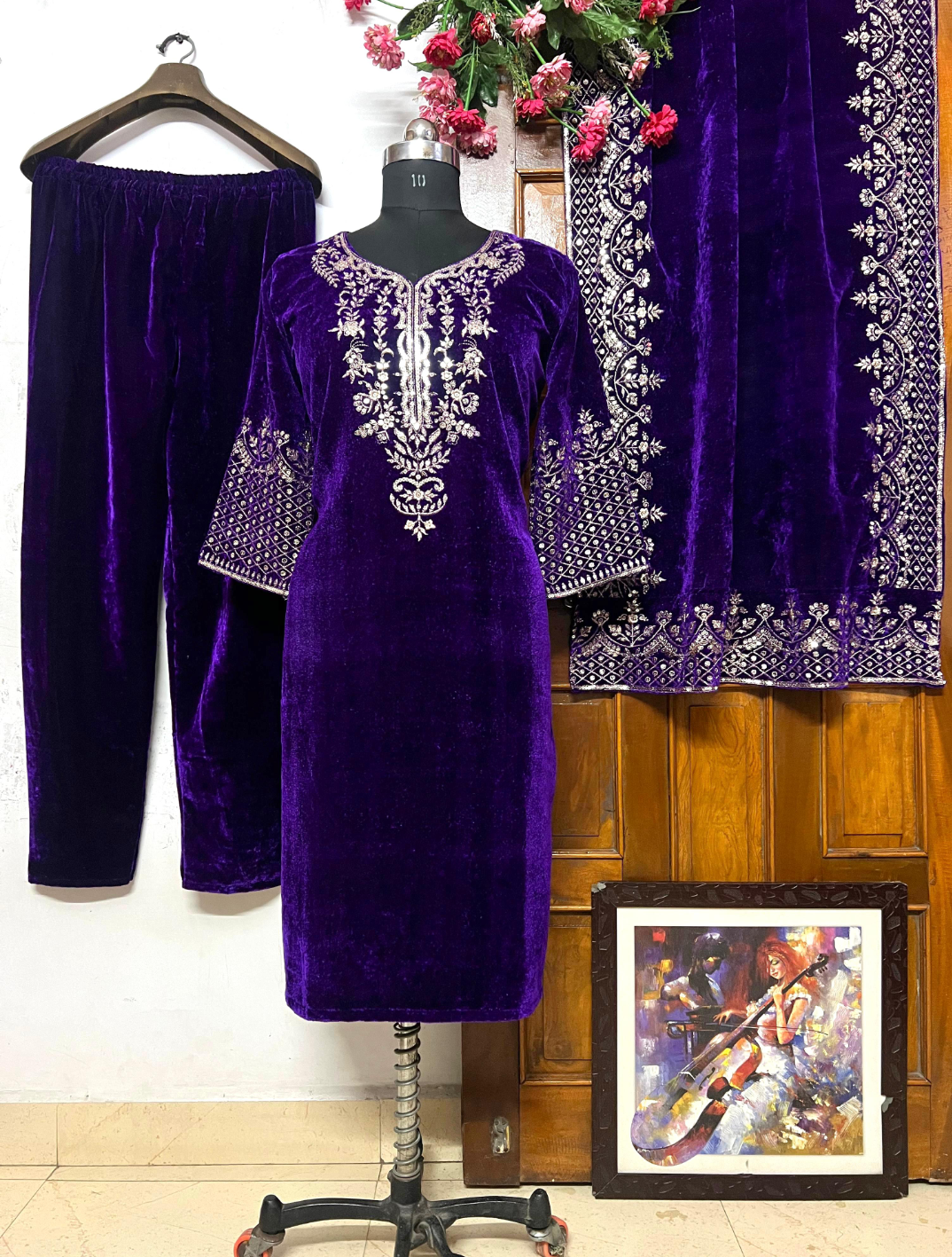 PRESENTING GOOD QUALITY HEAVY VELVET KURTA & PANT WITH BEAUTIFUL SEQUINS EMBROIDERY WORK