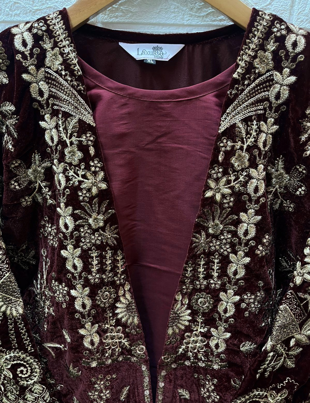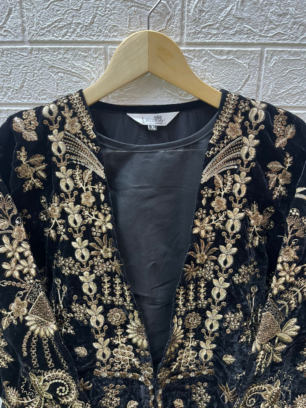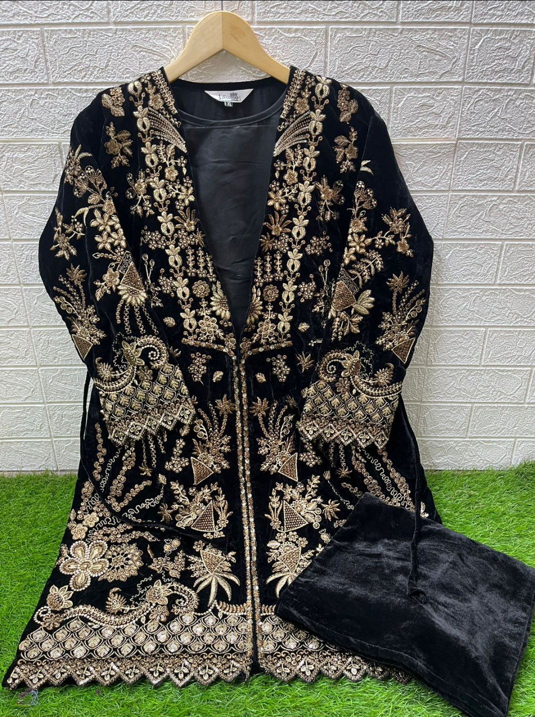 Designer Embrdry Velvet Tunic & Neck Pattern With Embroidery Sleeves paired with Velvet Fabric Pant
