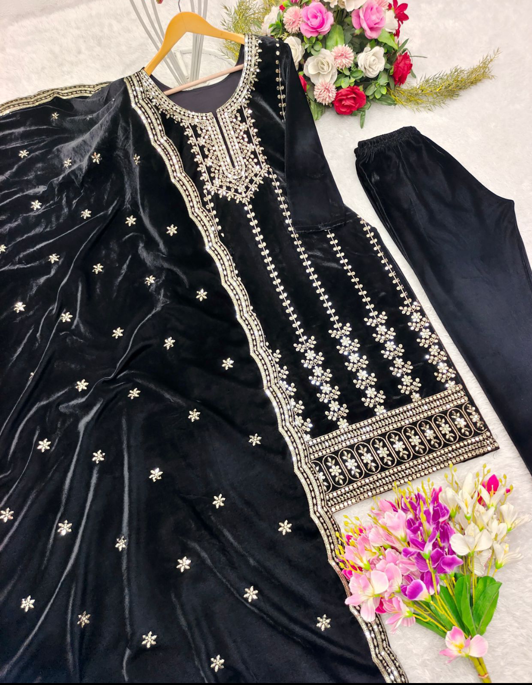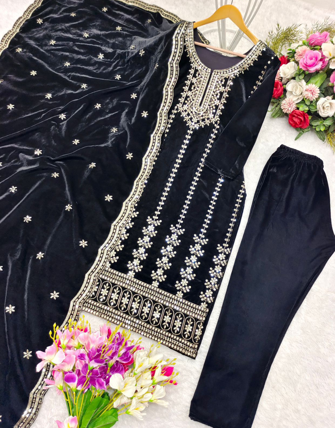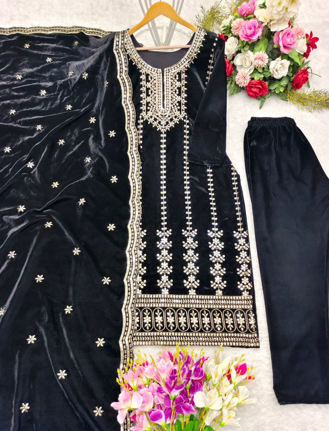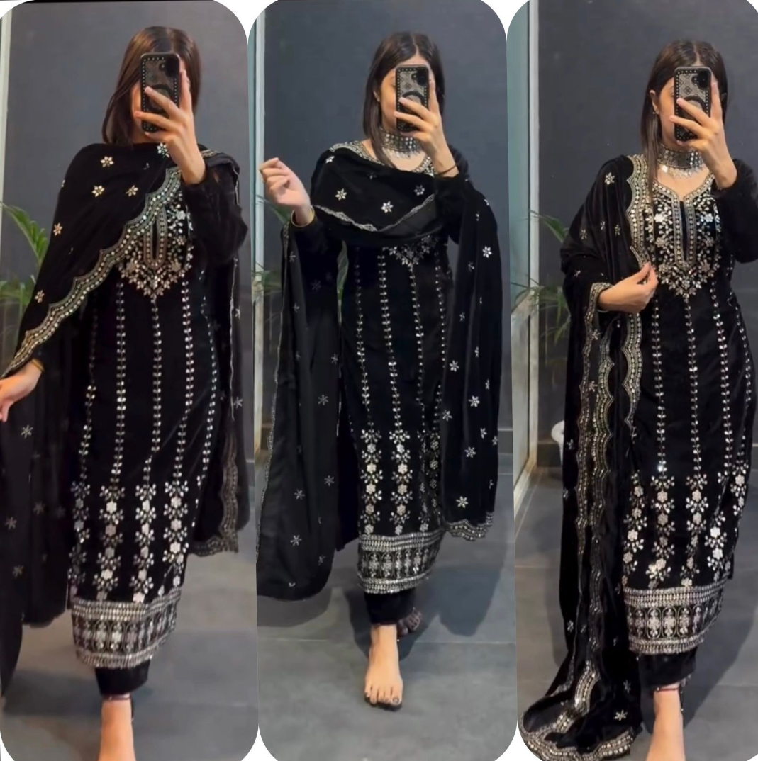 Presenting New Velvet Top -Pant Dupatta Set Fully Stitched Ready To Wear